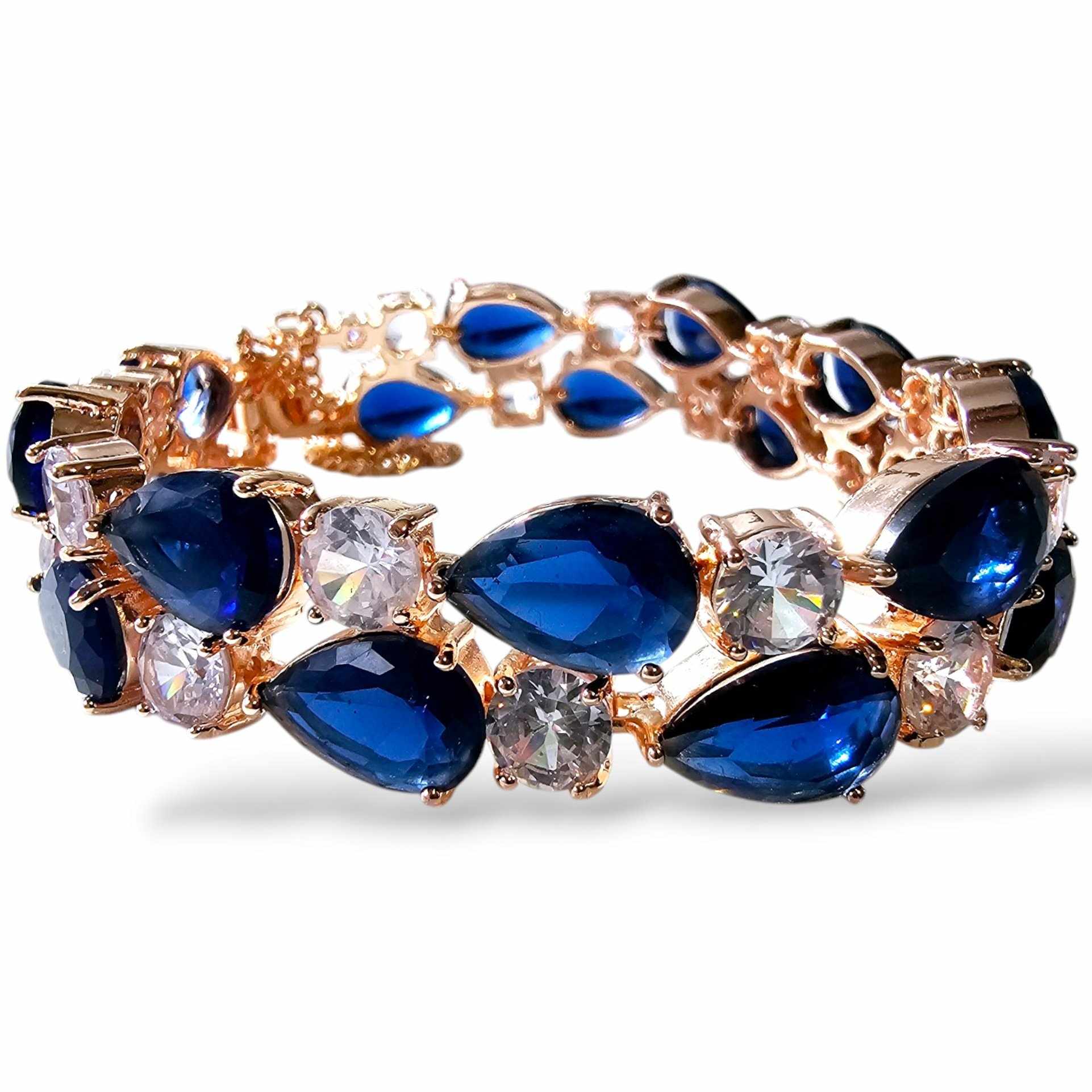 Ekskluzywna biżuteria w kolorze różowego złota z kamieniami w kolorze chabrowym i crystal to idealny wybór dla każdej kobiety, która chce poczuć się wyjątkowo.
