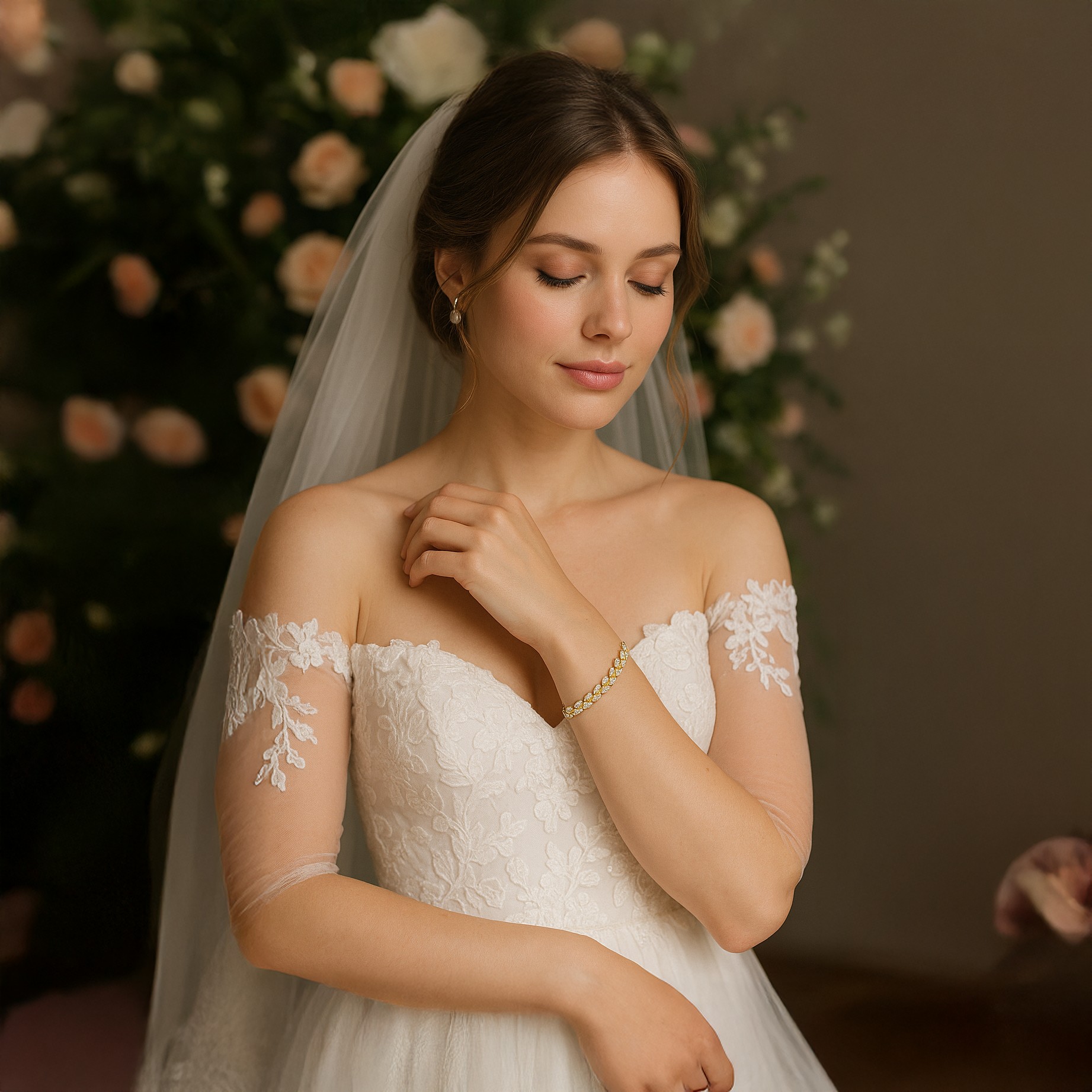 Ręcznie osadzane cyrkonie odbijają światło jak prawdziwe kamienie, zapewniając efekt luksusowej biżuterii na zdjęciach i podczas ceremonii.