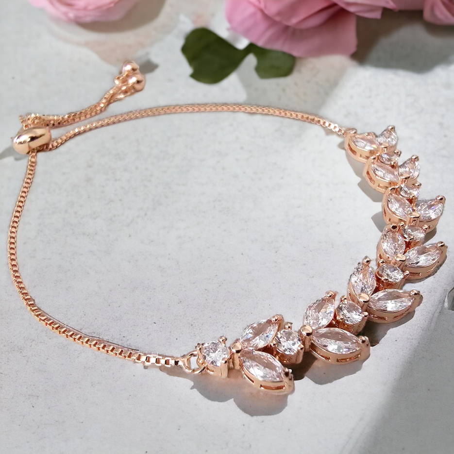 Zapraszam do zakupu tej pięknej bransoletki premium w kolorze różowego złota. To doskonały wybór dla wszystkich, którzy chcą dodać blasku i elegancji swojej stylizacji. Biżuteria będzie przyciągać uwagę i dodawać uroku i blasku każdej kobiecie.