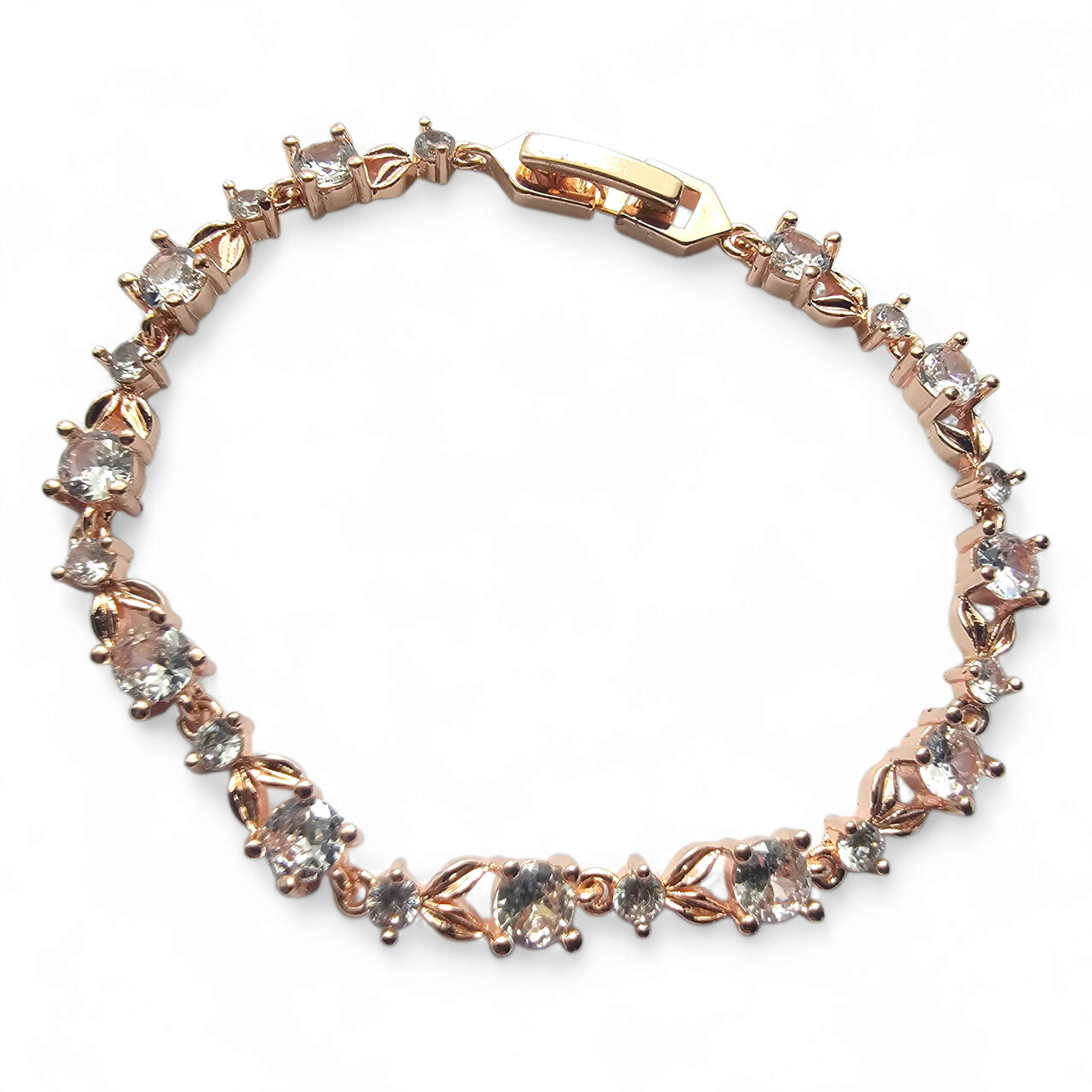 Ekskluzywna bransoletka ślubna ESLA w kolorze różowego złota, ozdobiona sześciennymi cyrkoniami, to doskonały wybór dla każdej kobiety, która pragnie podkreślić swoją urodę w wyjątkowy sposób.