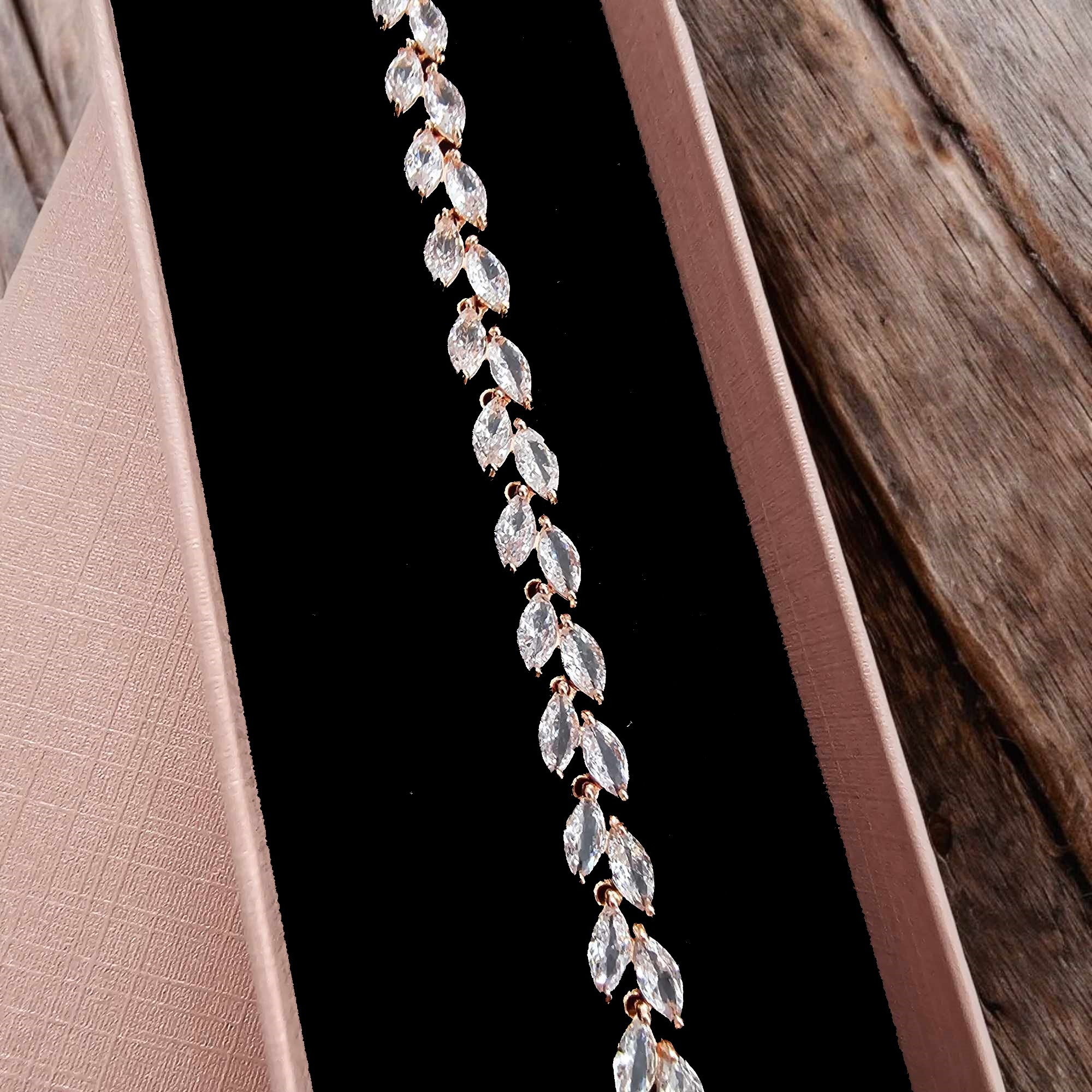 Zapraszam do zakupu tej pięknej bransoletki premium w kolorze różowego złota. To doskonały wybór dla wszystkich, którzy chcą dodać blasku i elegancji swojej stylizacji. Biżuteria będzie przyciągać uwagę i dodawać uroku i blasku każdej kobiecie.