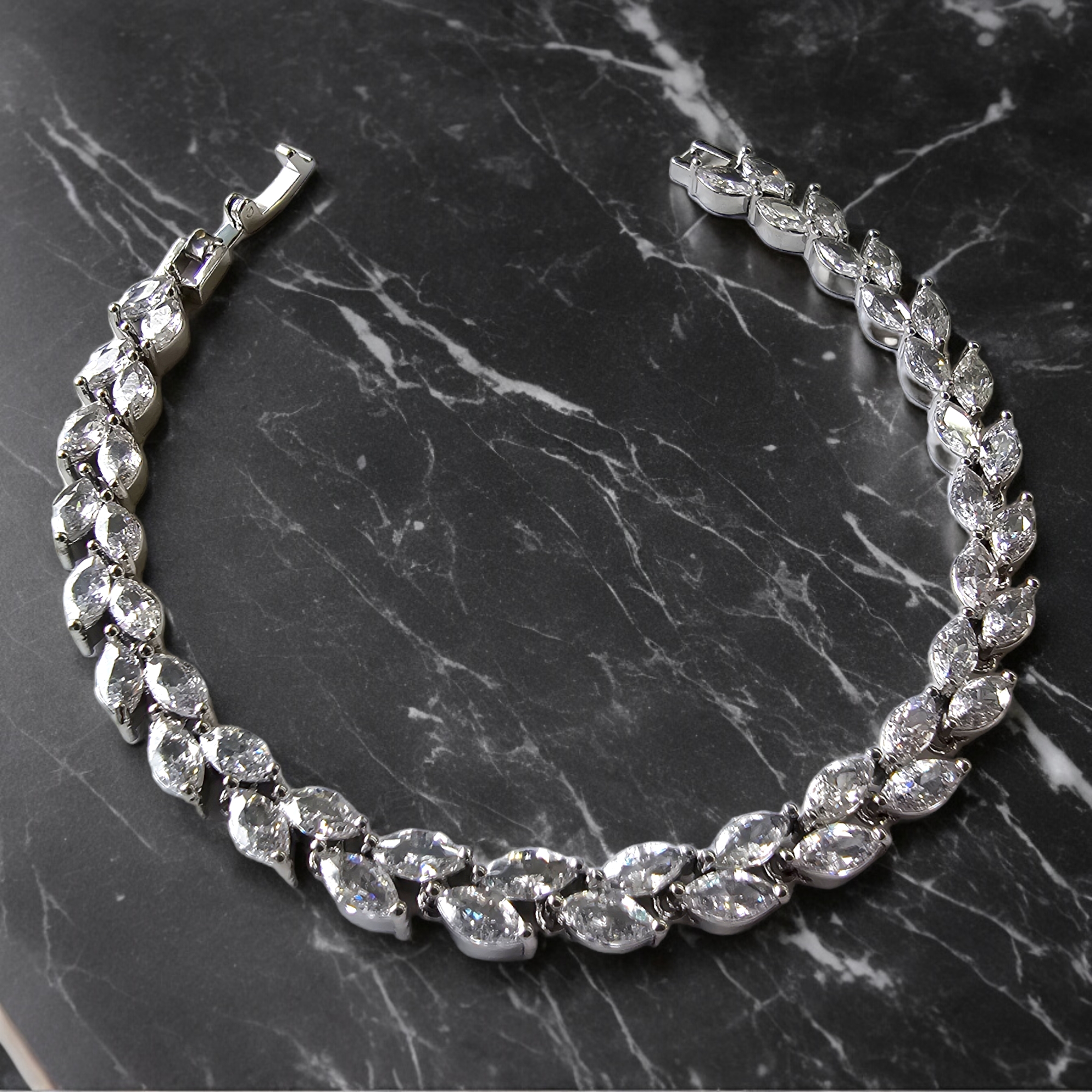 Mocno odbijające cyrkonie sześciennie sprawiają, że bransoletka jest widoczna i przyciągający uwagę, ale w bardzo subtelny sposób. Elementy biżuterii są delikatne i wysublimowane.
