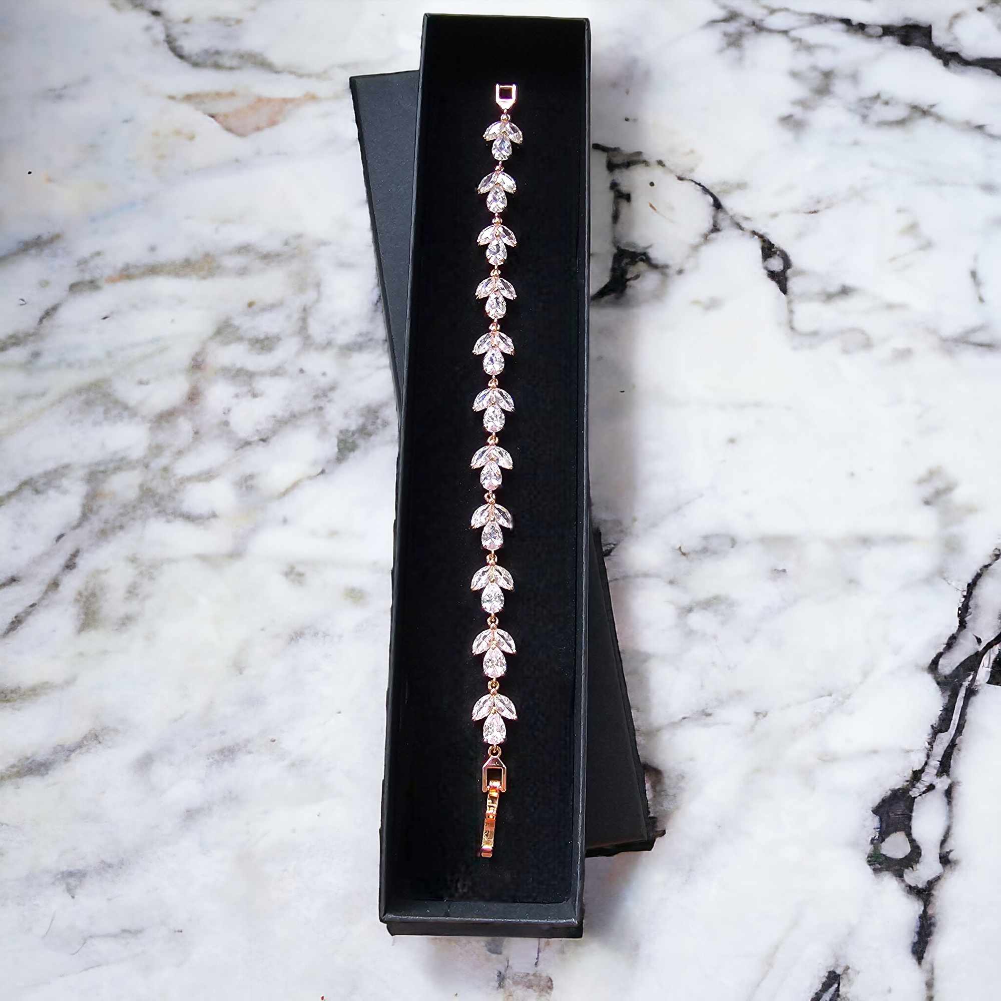 Zapraszam do zakupu tej pięknej bransoletki premium w kolorze różowego złota. To doskonały wybór dla wszystkich, którzy chcą dodać blasku i elegancji swojej stylizacji. Biżuteria będzie przyciągać uwagę i dodawać uroku i blasku każdej kobiecie.