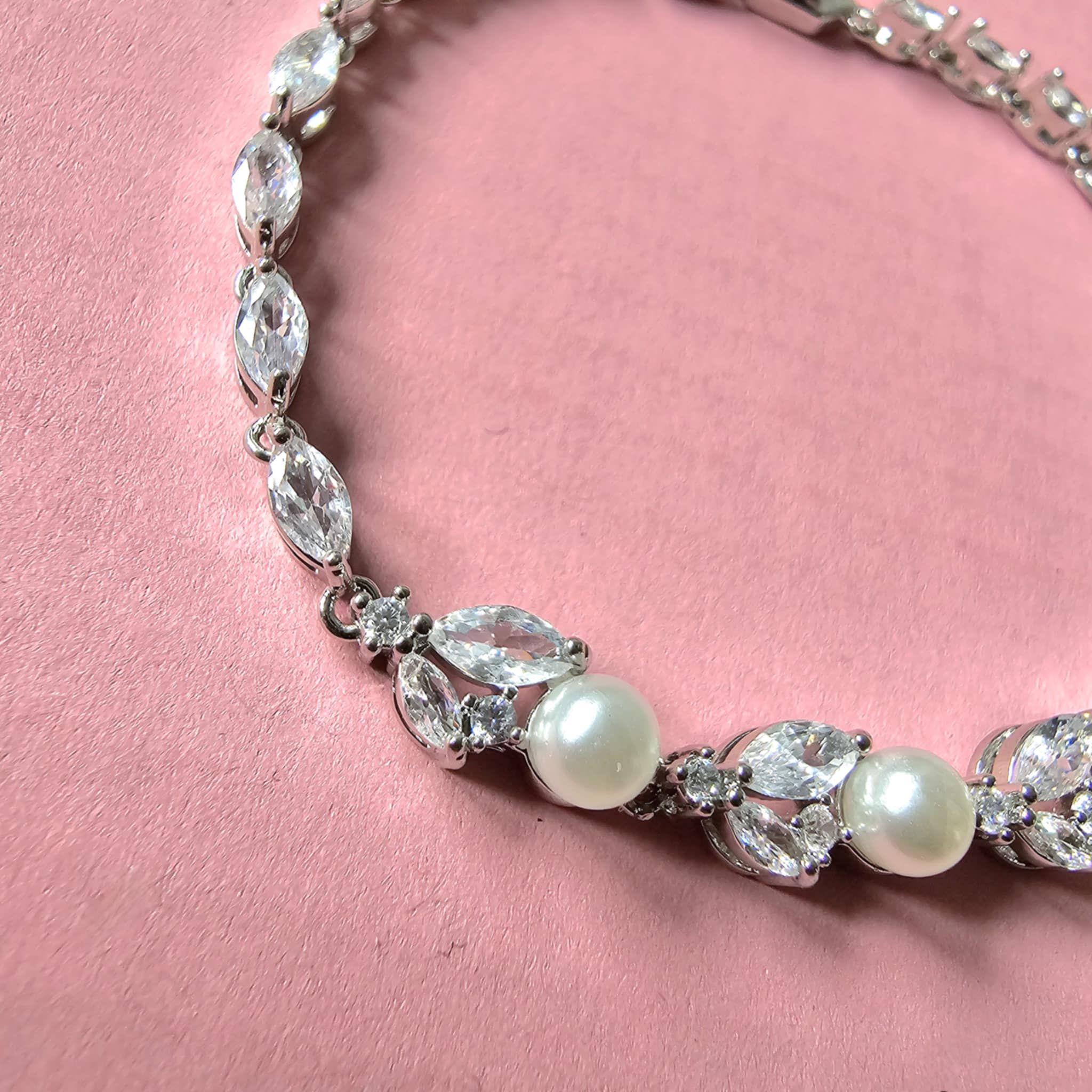 Ozdobiona starannie osadzonymi perełkami oraz lśniącymi cyrkoniami sześciennymi bransoletka przyciąga wzrok i dodaje blasku każdej stylizacji. Cyrkonie sześciokrotnie mocniej odbijają światło, dzięki czemu bransoletka jest doskonała na wyjątkowe okazje, takie jak śluby, wesela czy inne uroczystości, a także idealna do codziennych zestawień, staje się nieodłącznym elementem każdej kolekcji biżuterii.