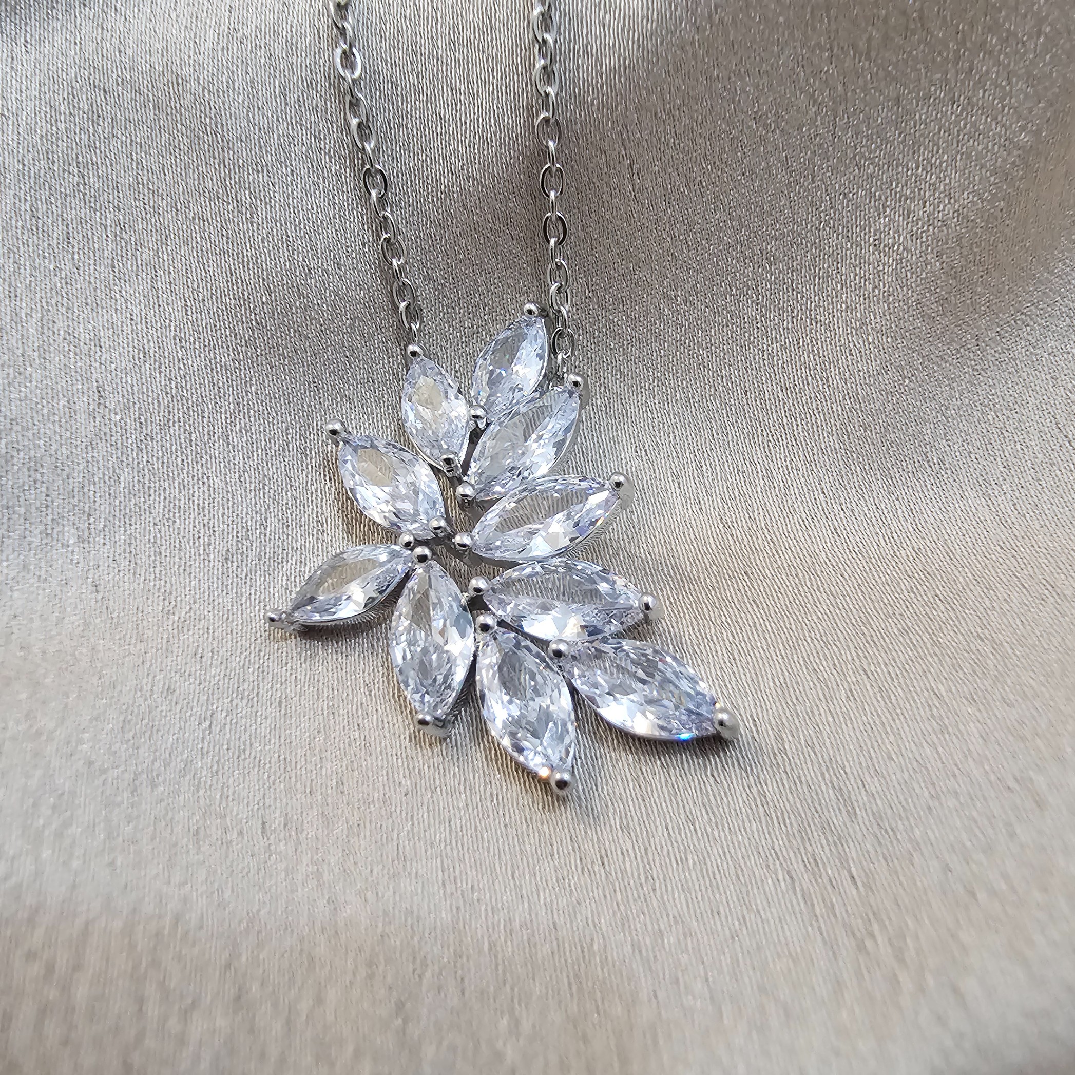 Zapraszam do zakupu tego pięknego kompletu premium w kolorze srebra. To doskonały wybór dla wszystkich, którzy chcą dodać blasku i elegancji swojej stylizacji. Biżuteria będzie przyciągać uwagę i dodawać uroku i blasku każdej kobiecie.