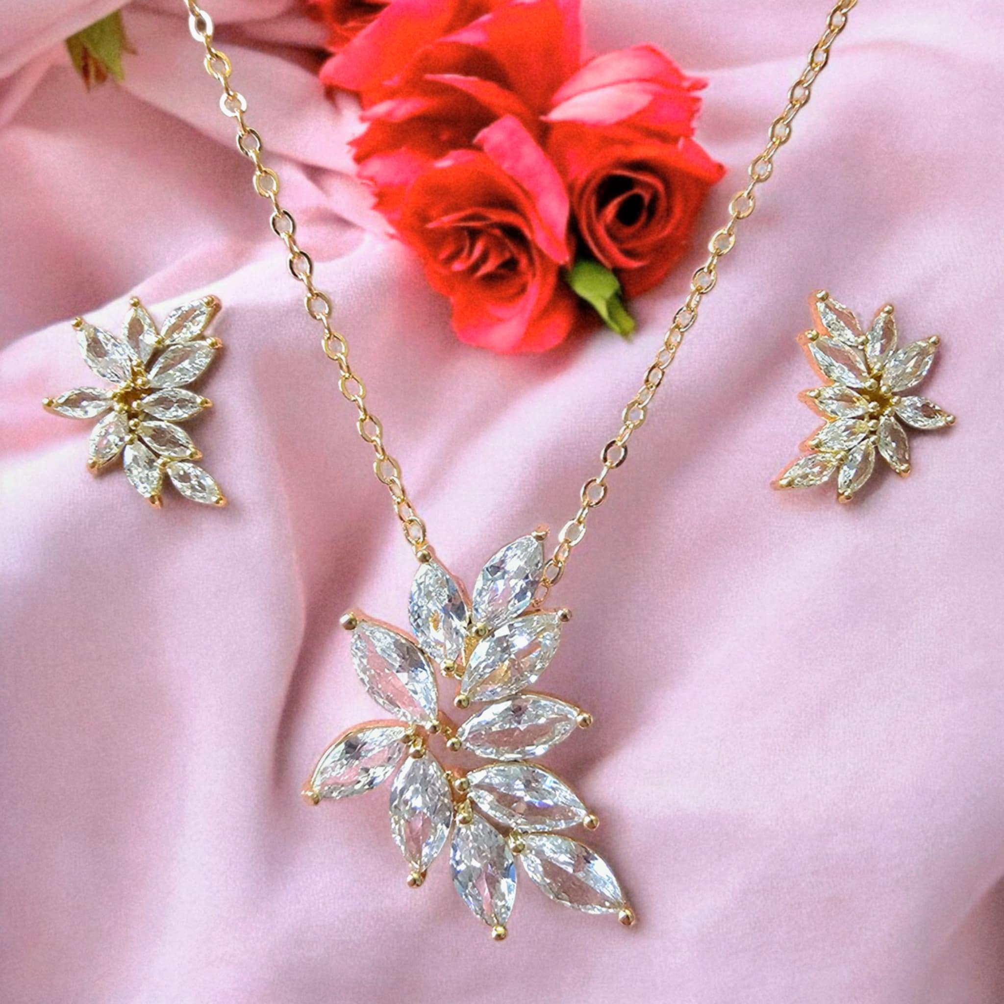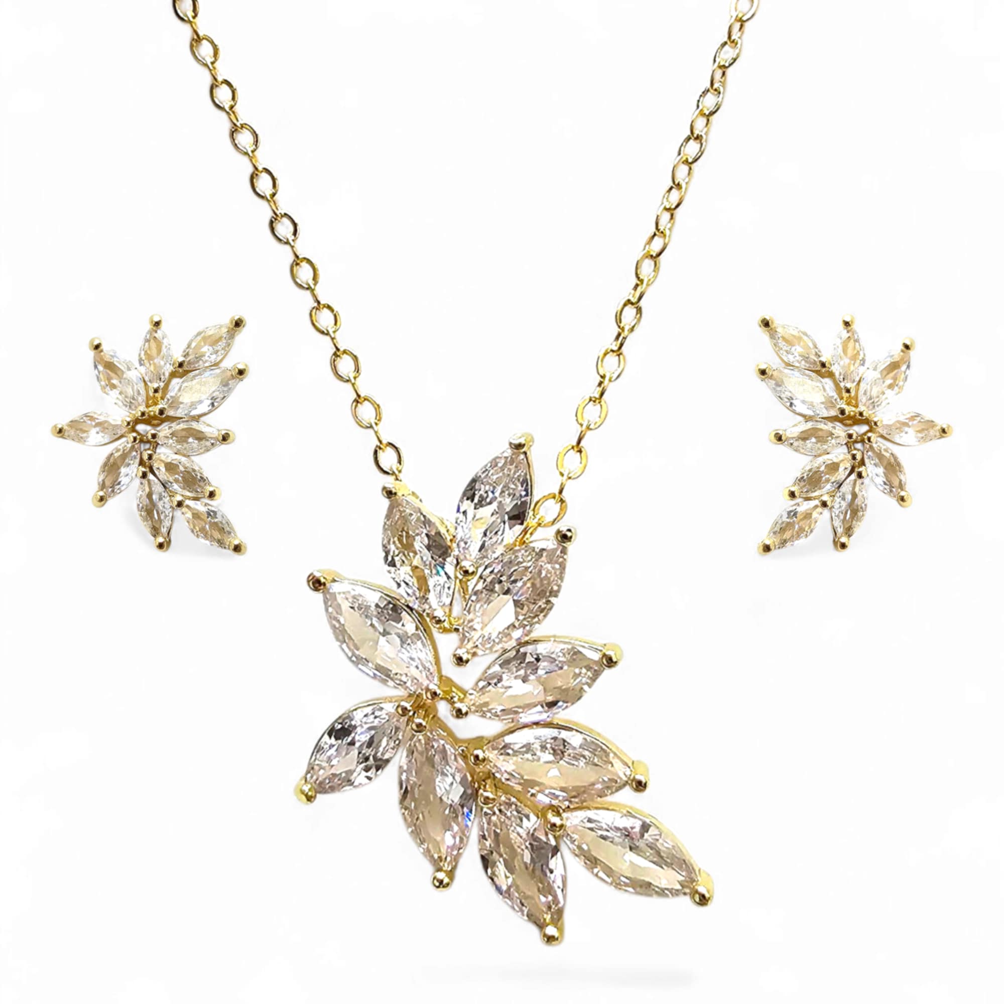 Ręcznie osadzane cyrkonie sześcienne dodają biżuterii blasku i sprawiają, że odbija światło jeszcze intensywniej. Komplet w stylu glamour jest elegancki i doskonale nadaje się jako biżuteria ślubna, ale również jako ozdoba na inne wyjątkowe okazje.