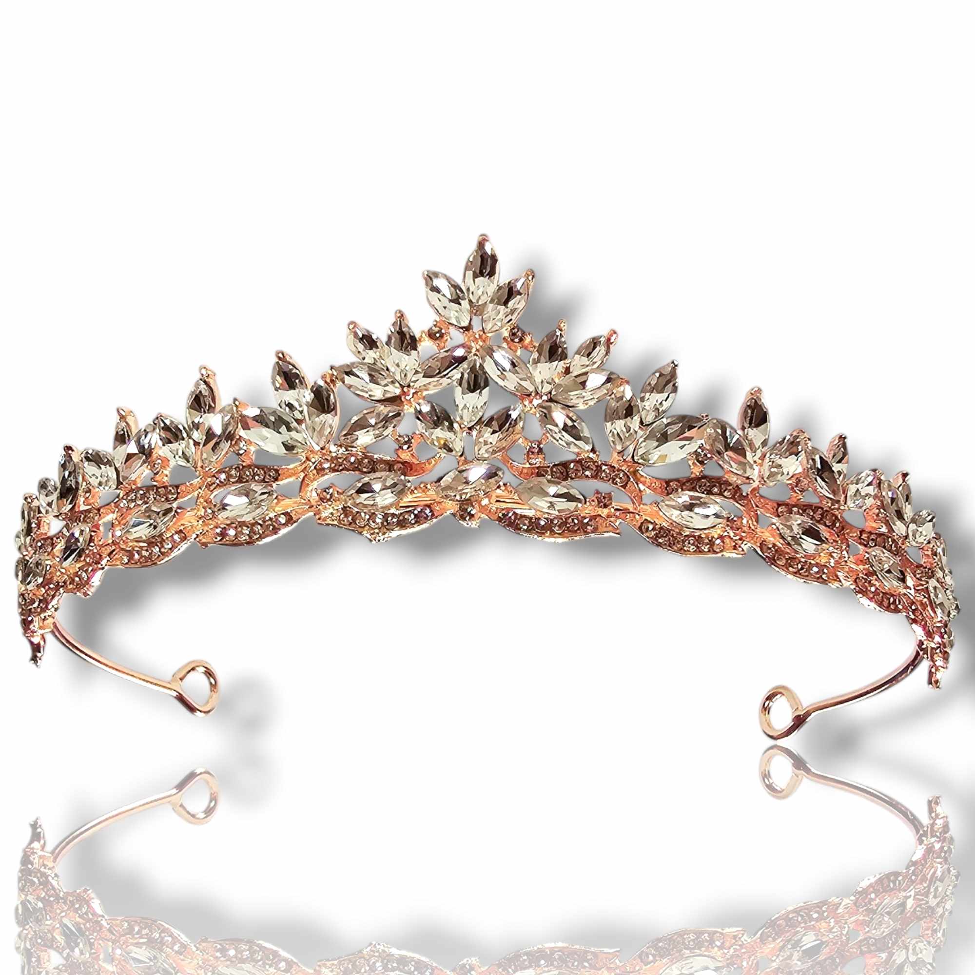 Diadem Ślubny w kolorze różowego złota z kamieniami i Cyrkoniami to niezbędny dodatek dla każdej przyszłej panny młodej pragnącej emanować elegancją i luksusem w dniu swojego ślubu. Został precyzyjnie wykonany z dbałością o każdy detal, co podkreśla jego wyjątkowy design. Kamienie i Cyrkonia dodają mu subtelnego blasku, idealnie komponując się z kolorystyką różowego złota.