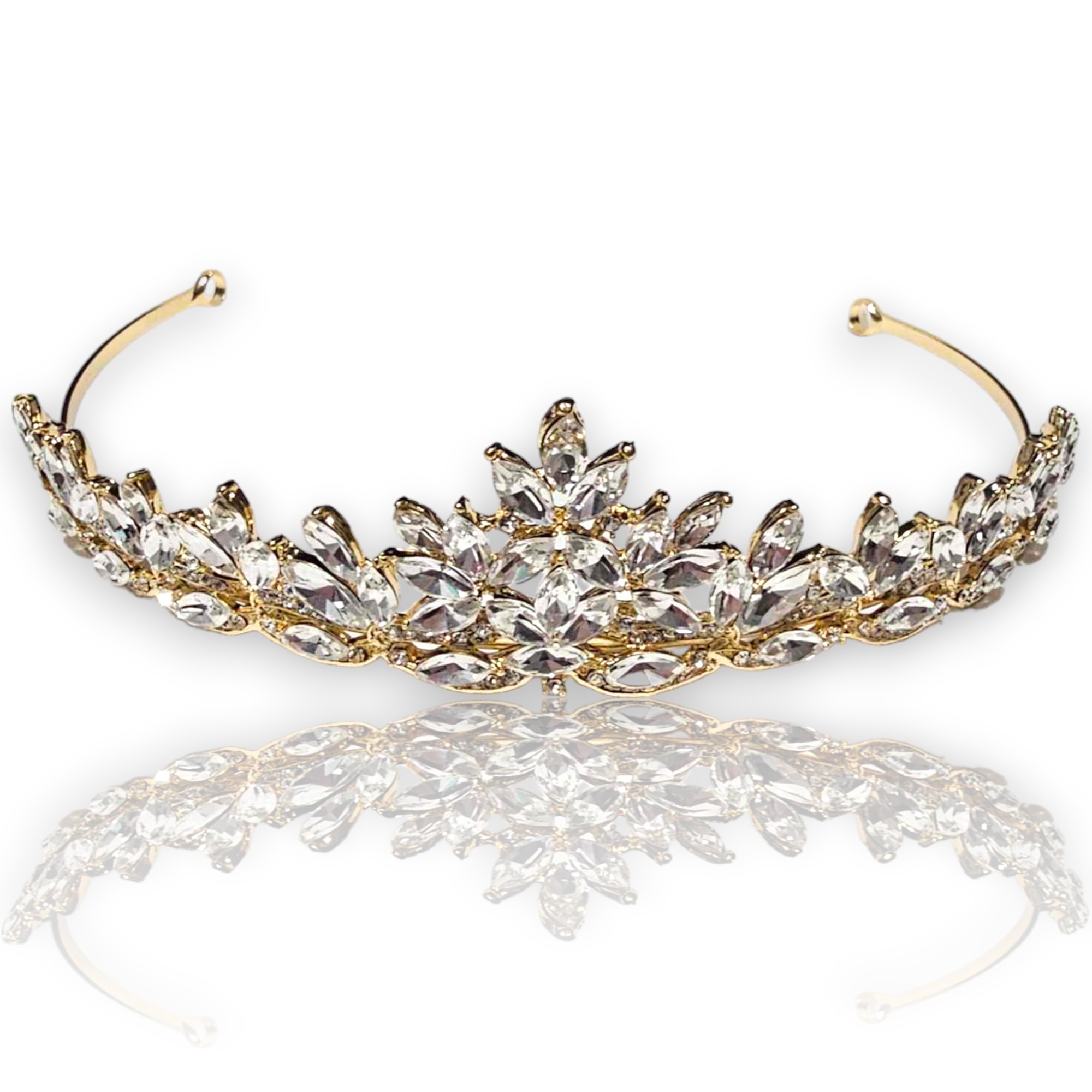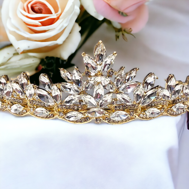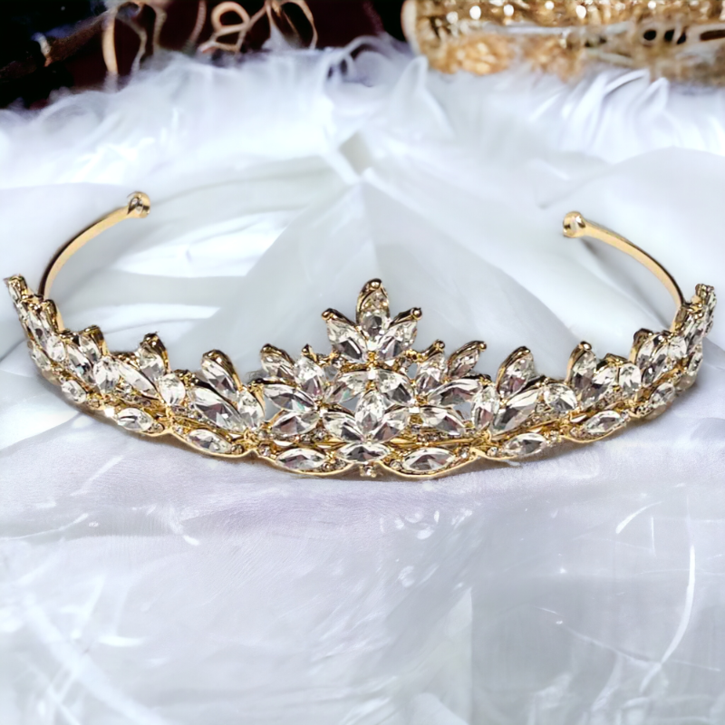 Diadem ślubny z Cyrkoniami w kolorze złotym to wytworny dodatek, który podkreśli piękno i wdzięk każdej panny młodej w tym wyjątkowym dniu.