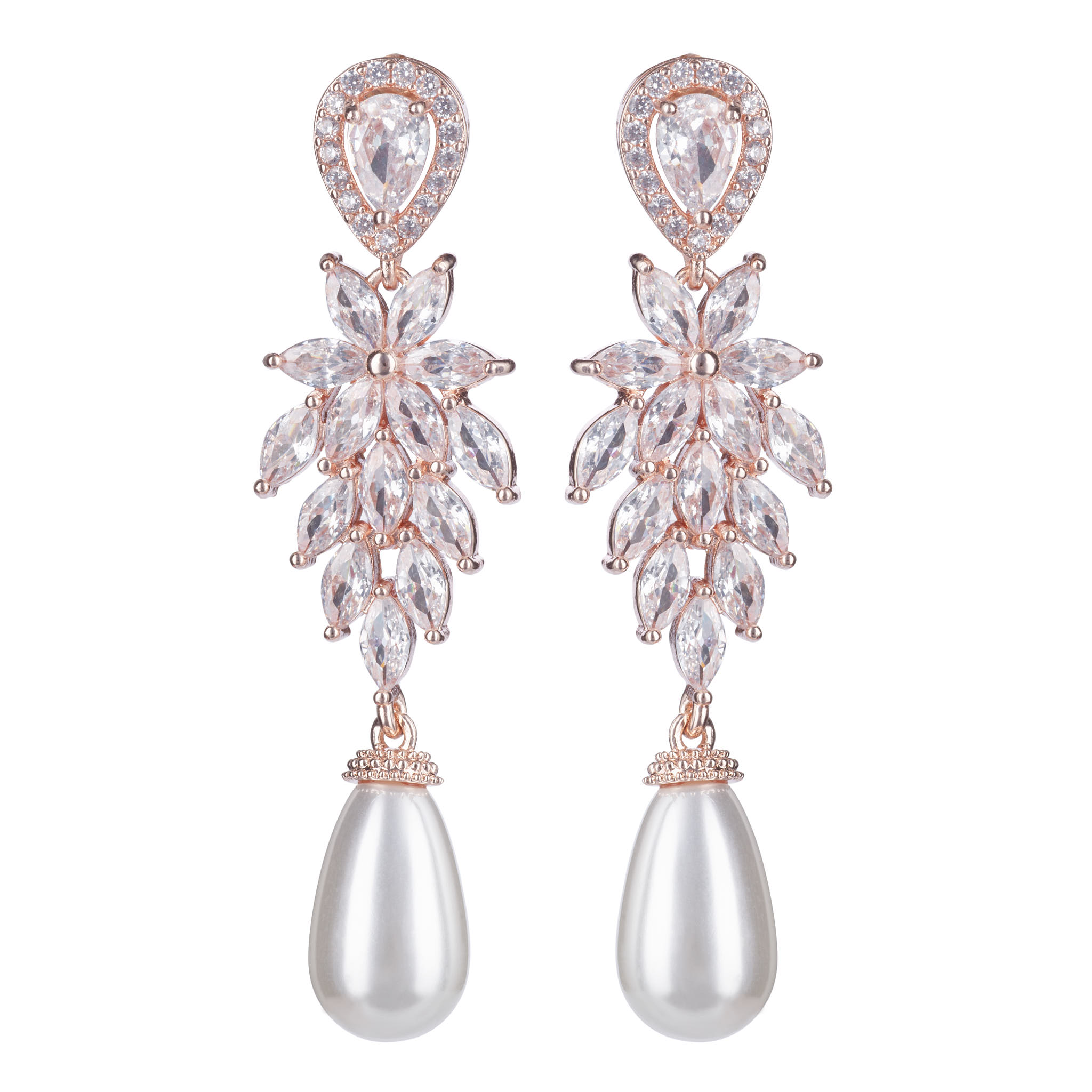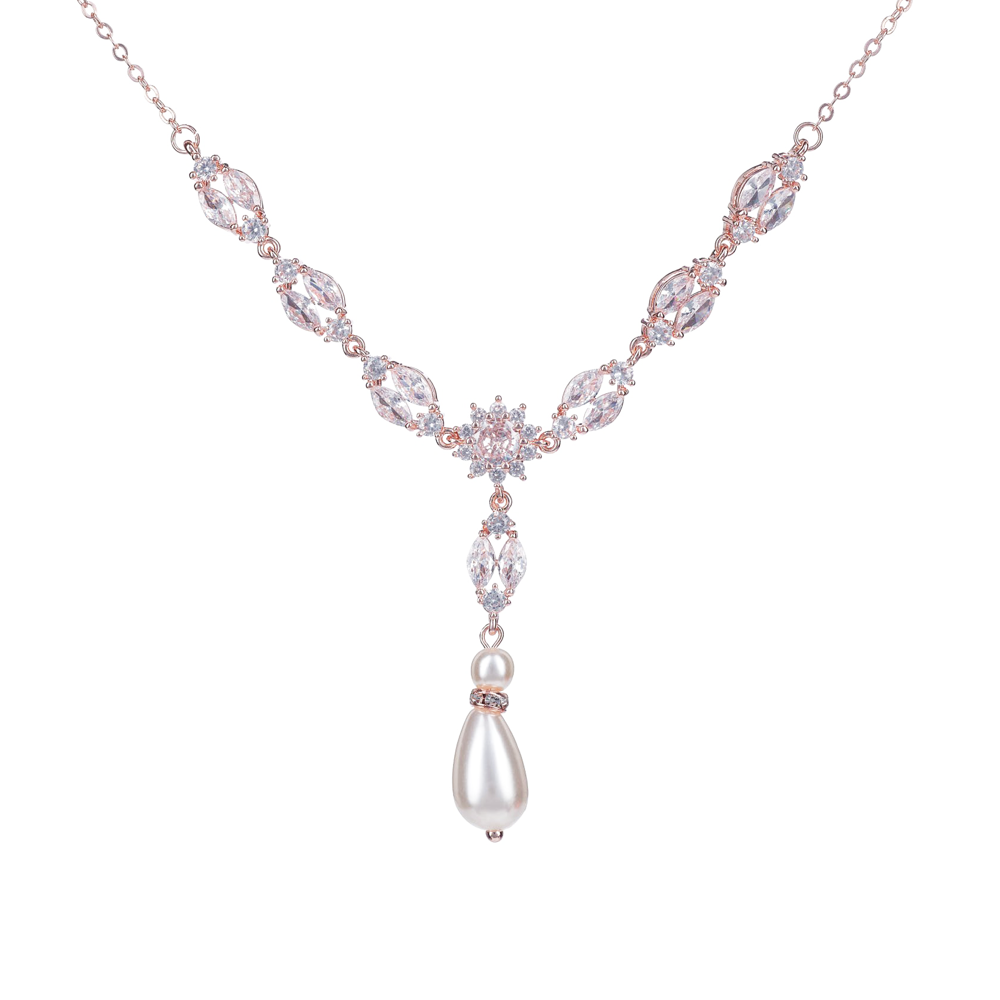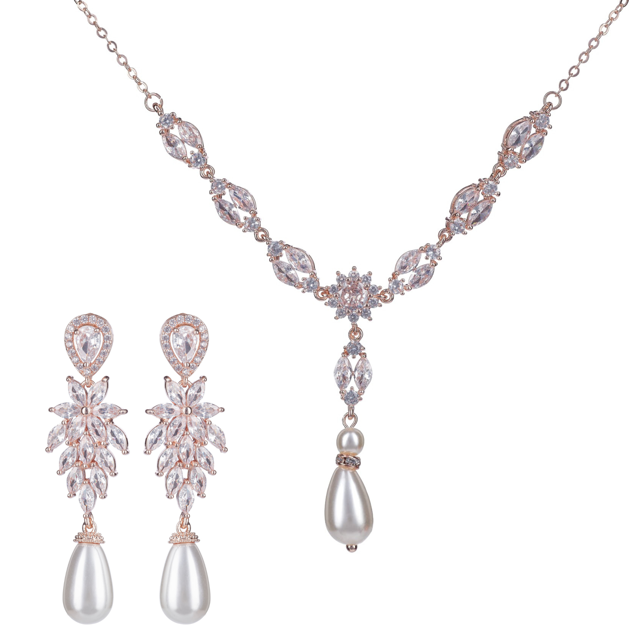 Ekskluzywna biżuteria w kolorze różowego złota z cyrkonią sześcienną i delikatną perłą to idealny wybór dla każdej kobiety, która chce poczuć się elegancko w ważnym dla siebie dniu.
