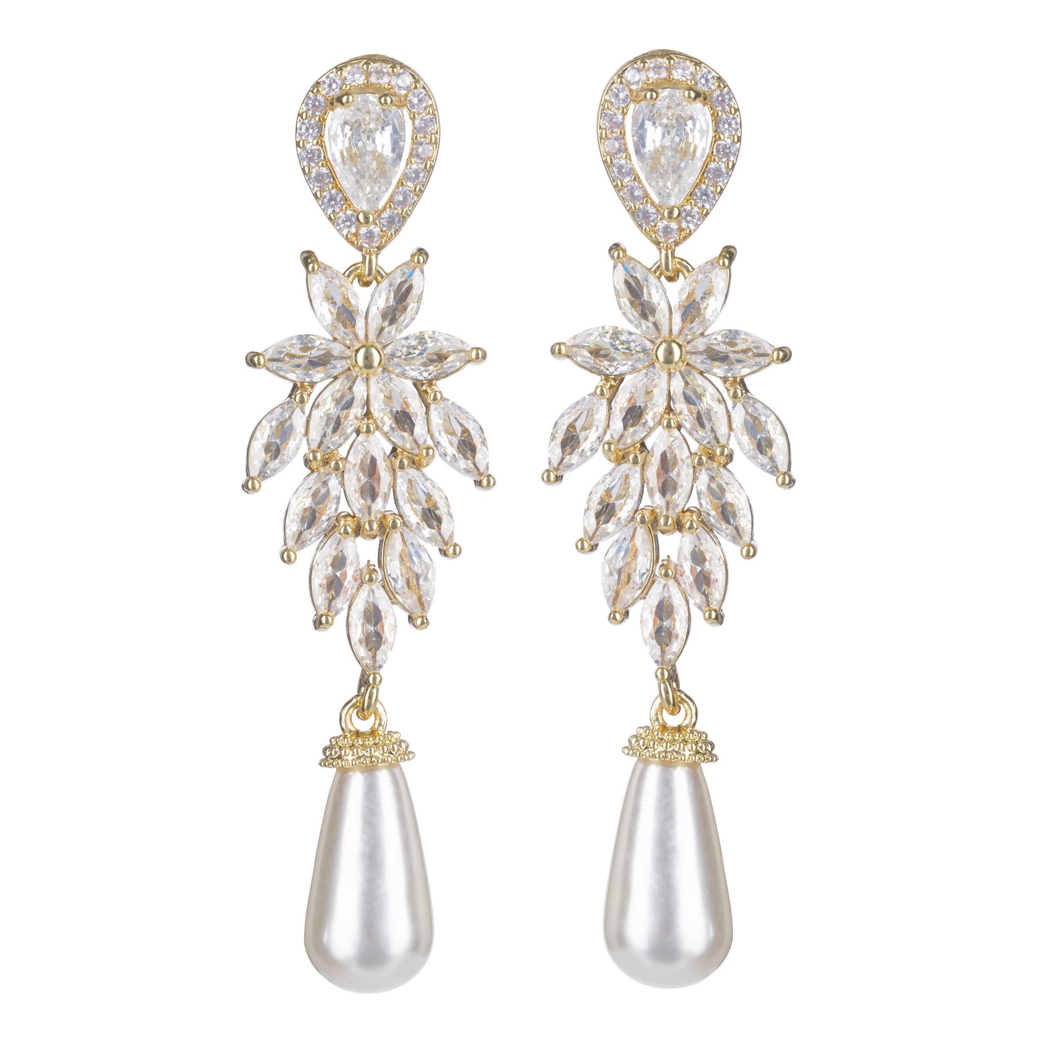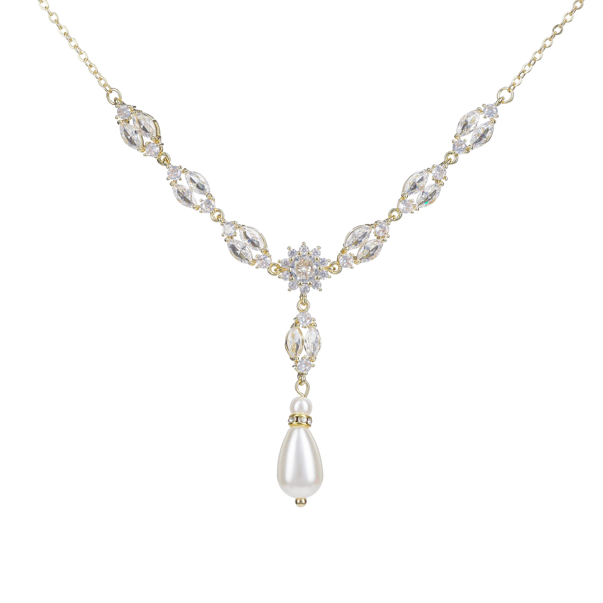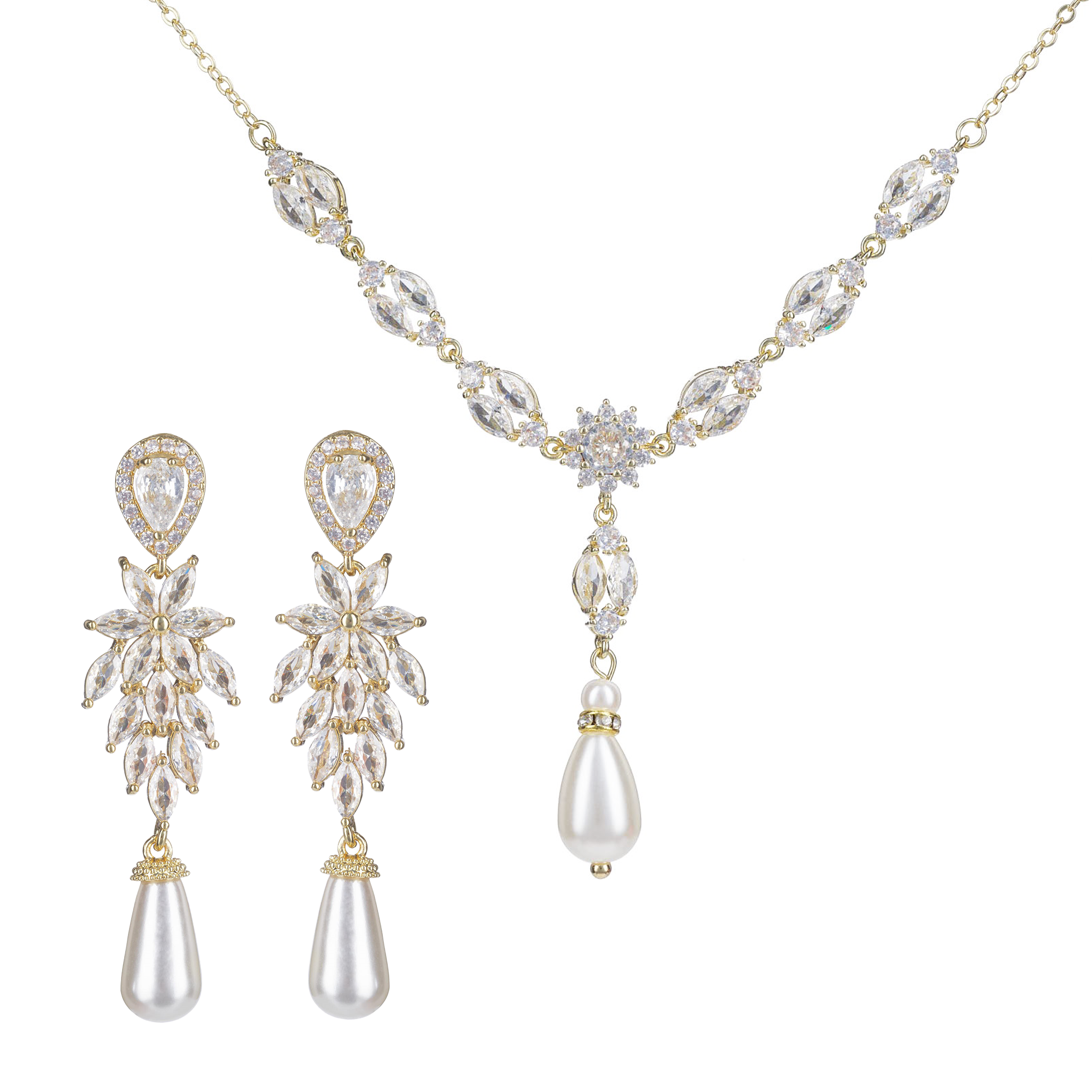 Ekskluzywna biżuteria w kolorze złota z cyrkonią sześcienną i delikatną perłą to idealny wybór dla każdej kobiety, która chce poczuć się elegancko w ważnym dla siebie dniu.
