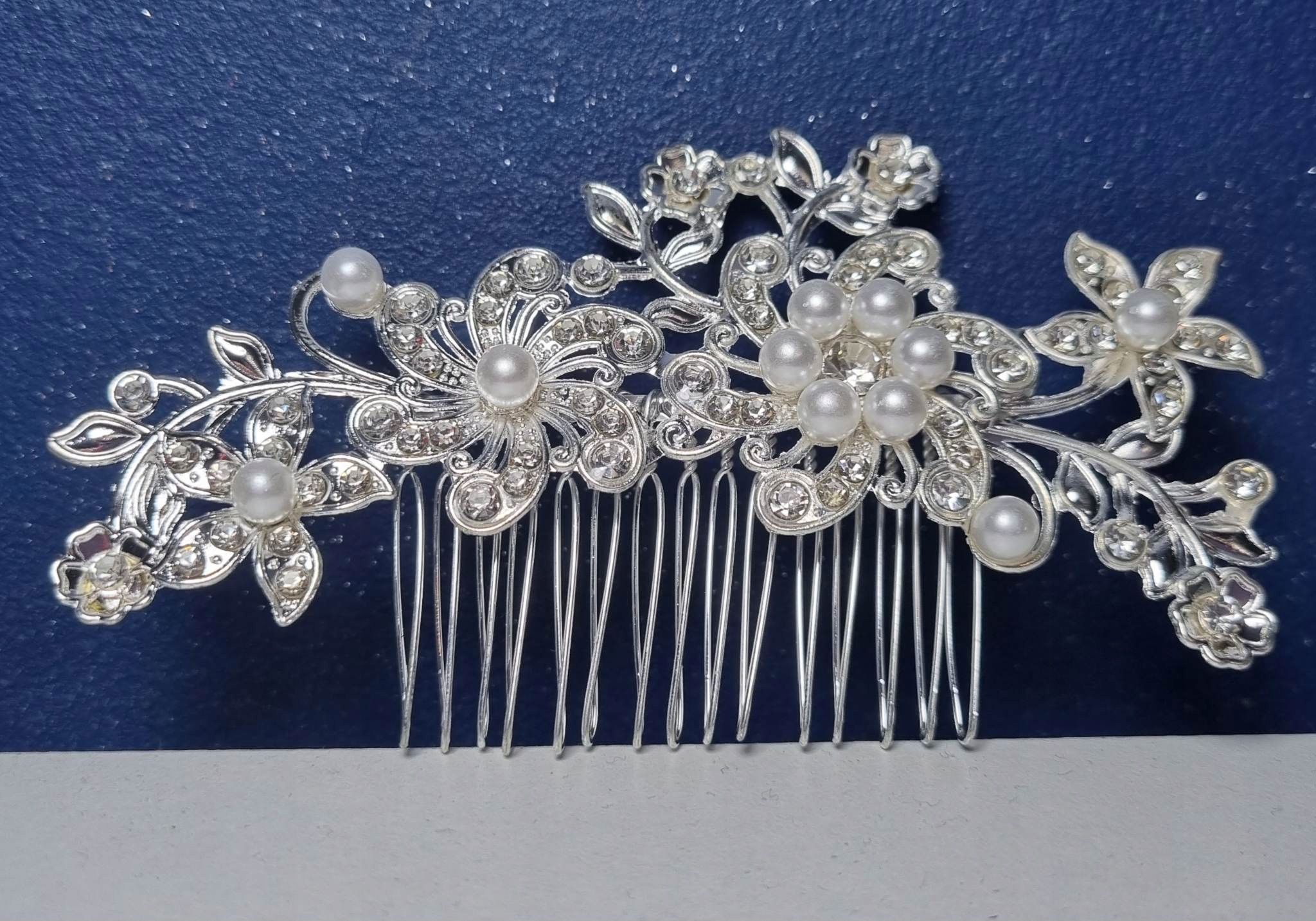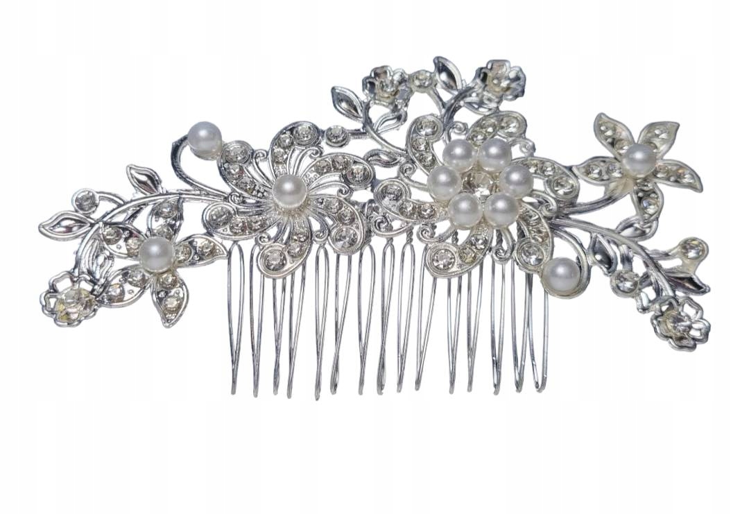 Grzebyki ślubne to eleganckie ozdoby, które dodają blasku i delikatności każdej stylizacji. Subtelne zdobienia z kryształków i pereł pięknie dopełniają fryzurę, podkreślając wyjątkowy charakter chwili i romantyczny urok panny młodej.