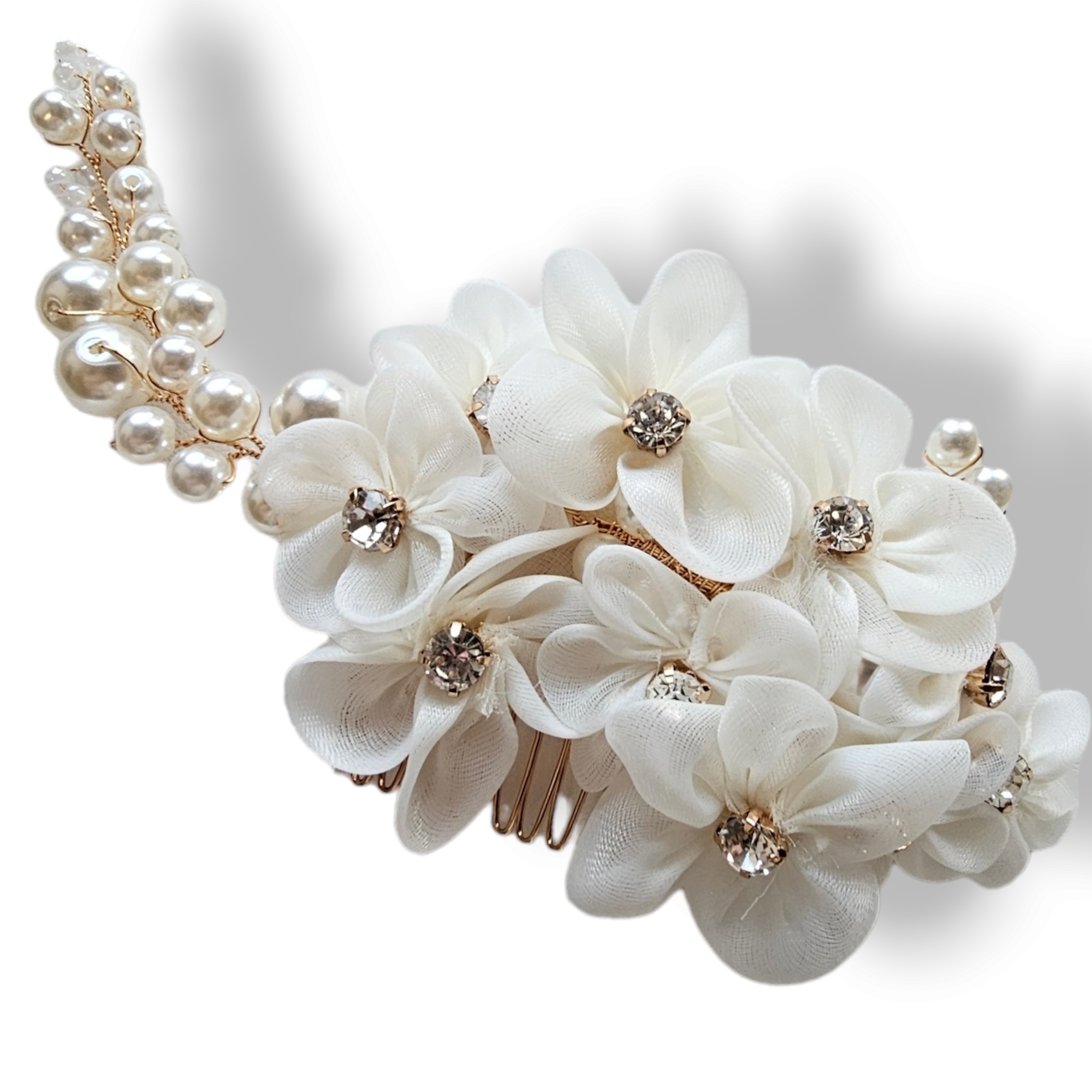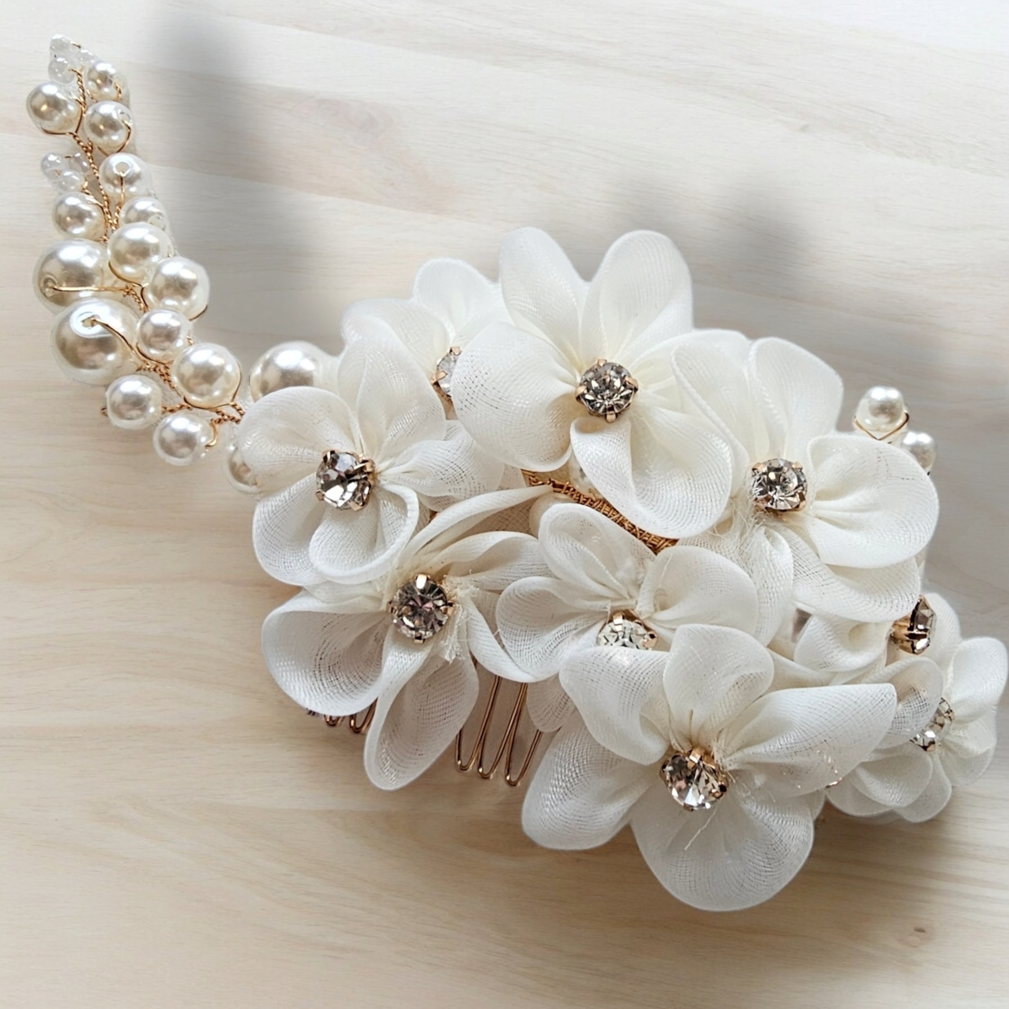 Zachęcam do zakupu eleganckiego grzebienia ślubnego ozdobionego kwiatkami i cyrkoniami.