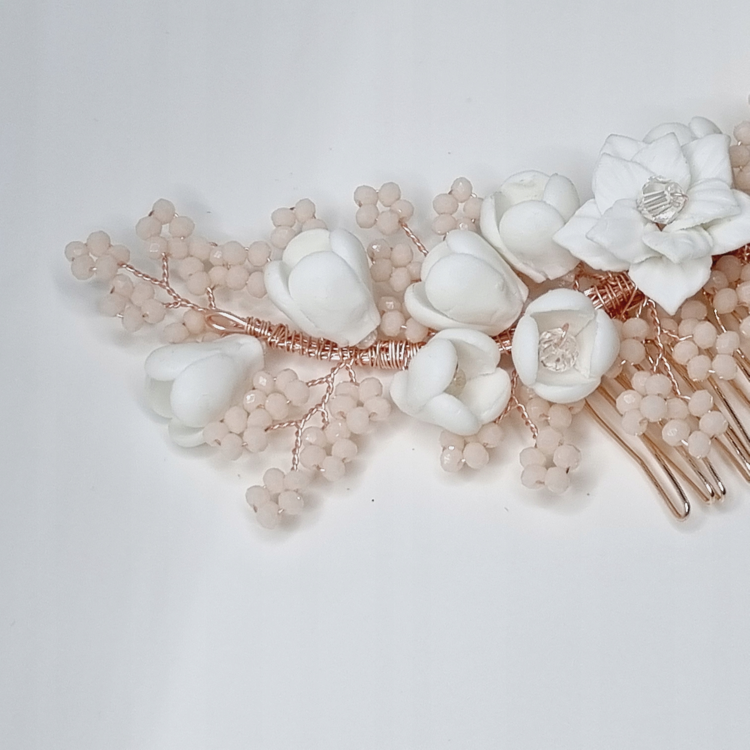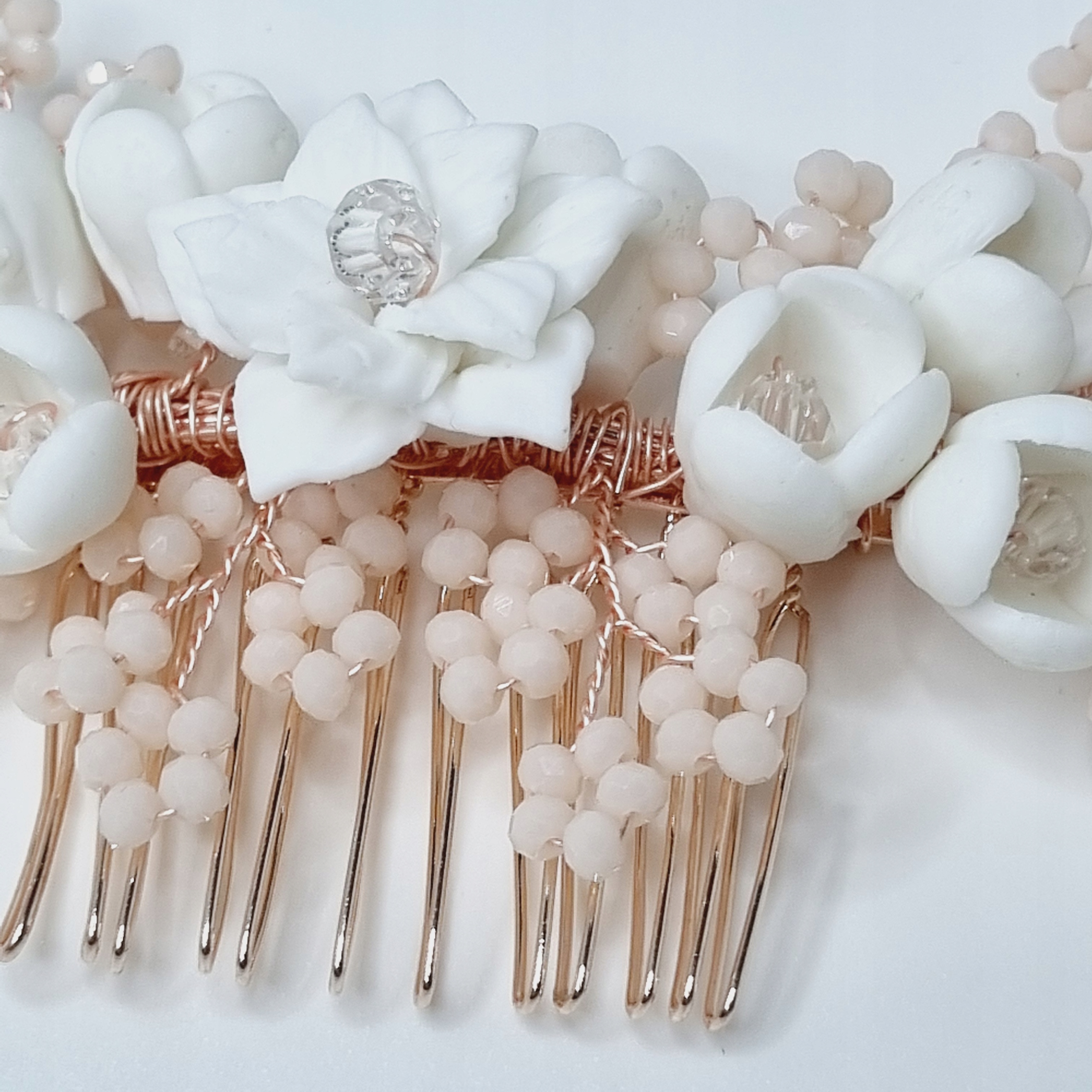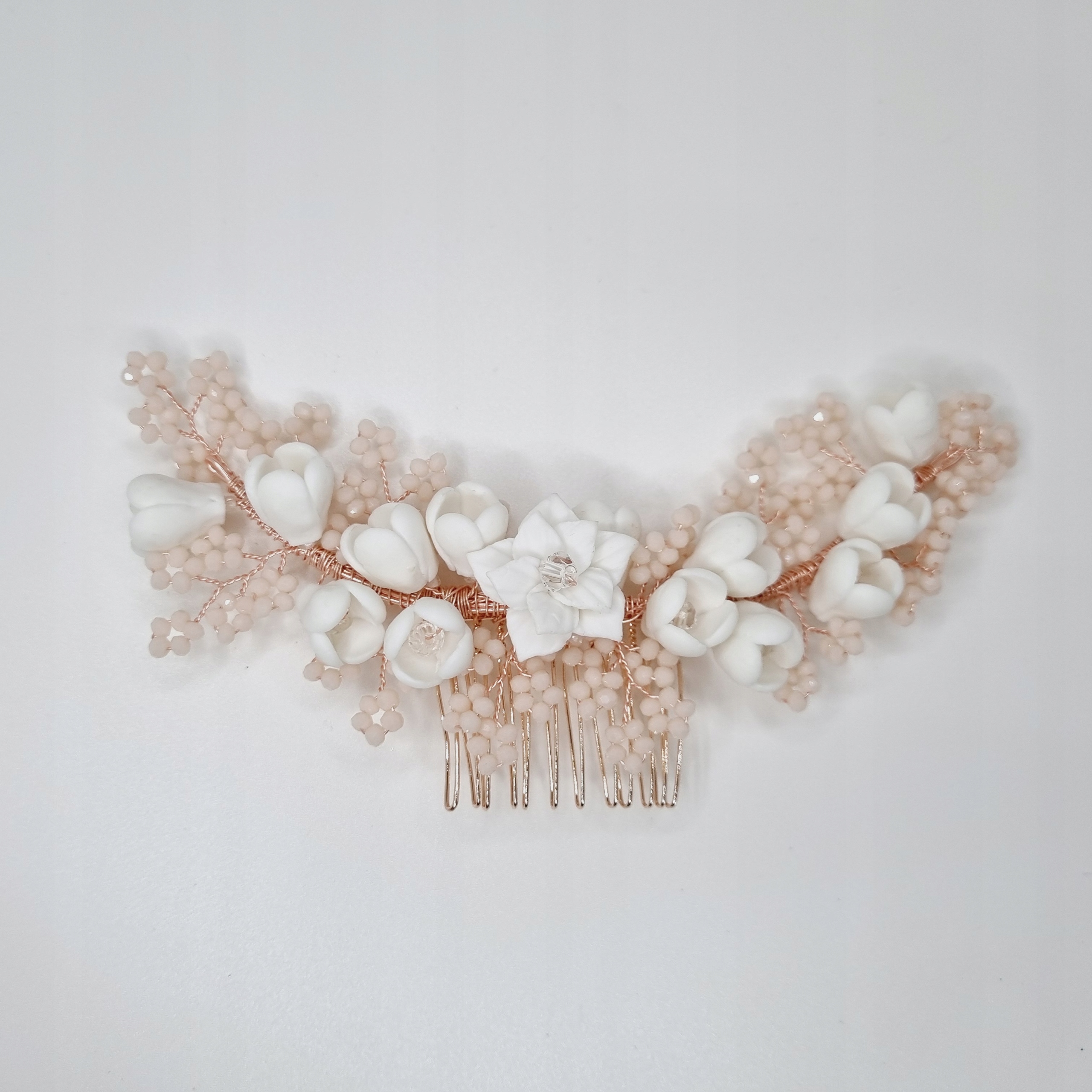 Grzebyki ślubne to eleganckie ozdoby, które dodają blasku i delikatności każdej stylizacji. Subtelne zdobienia z kryształków i pereł pięknie dopełniają fryzurę, podkreślając wyjątkowy charakter chwili i romantyczny urok panny młodej.