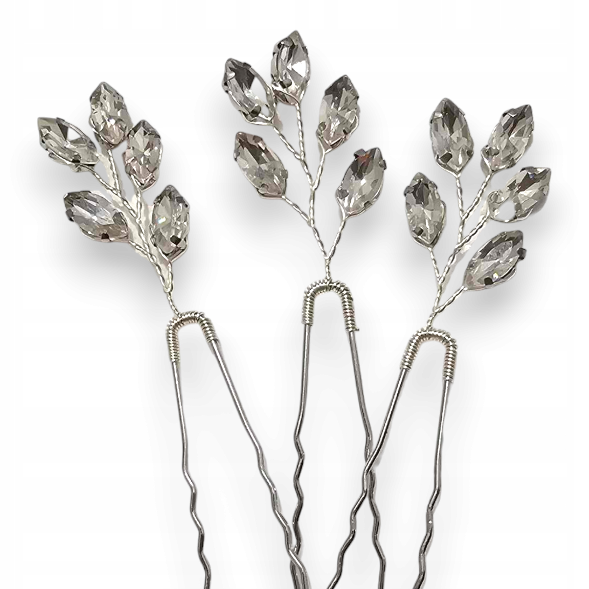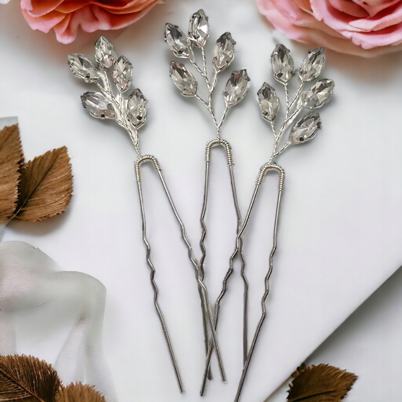 Kokówki ślubne, szpilki do włosów, srebrne z cyrkoniami, 3 szt