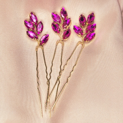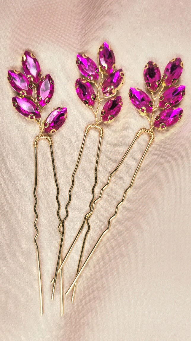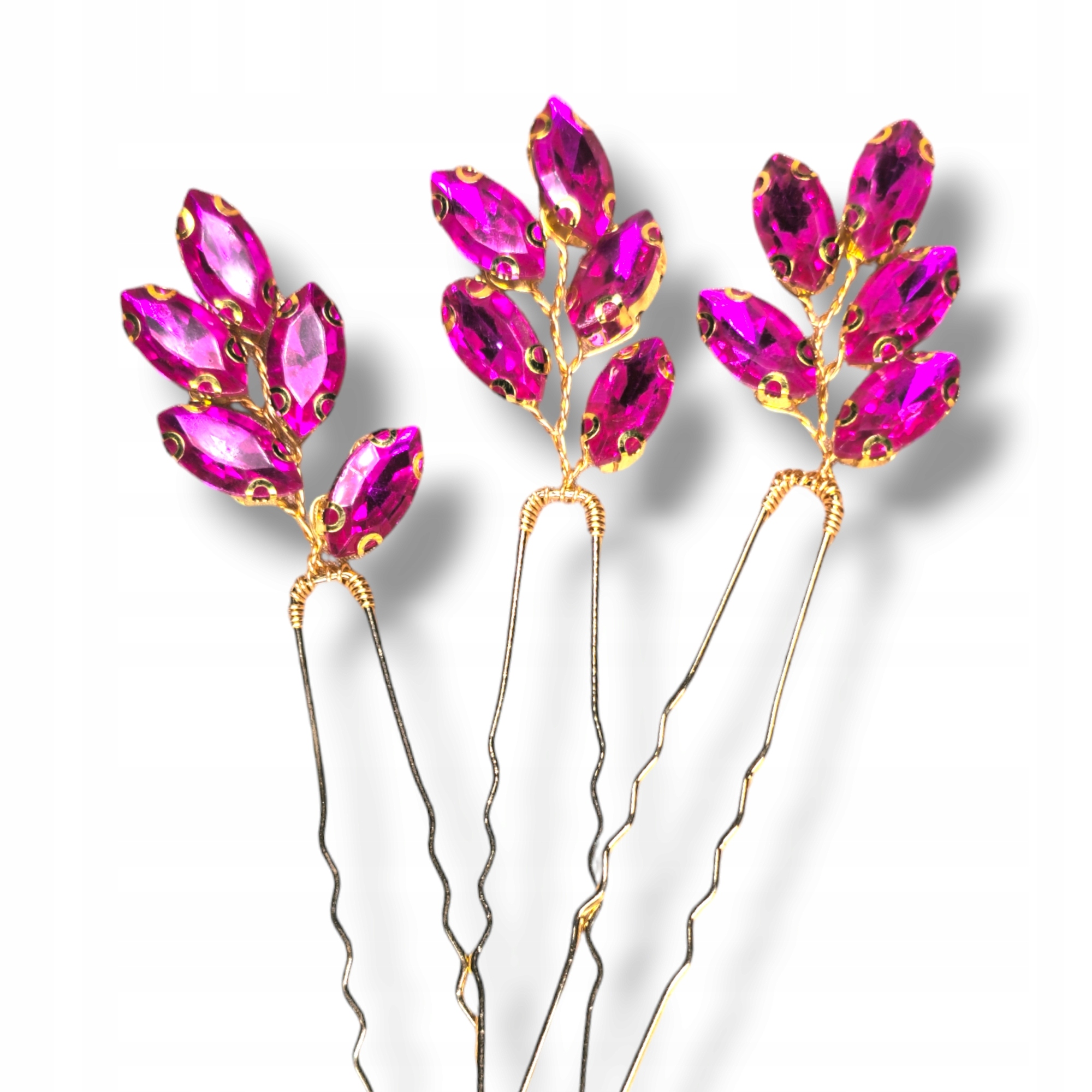Zapraszamy serdecznie do zakupu eleganckiego zestawu 3 złotych kokówek z fuksjowymi kamieniami.