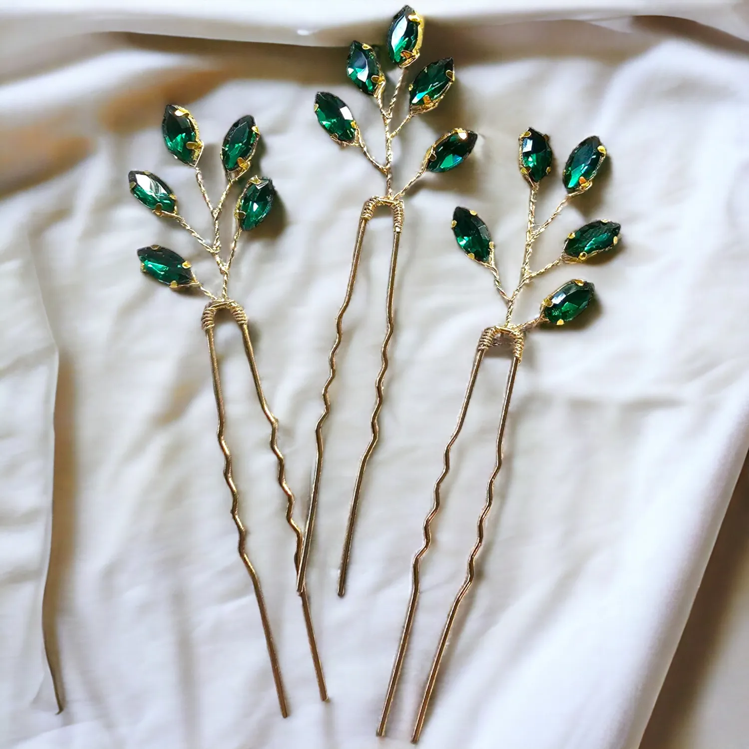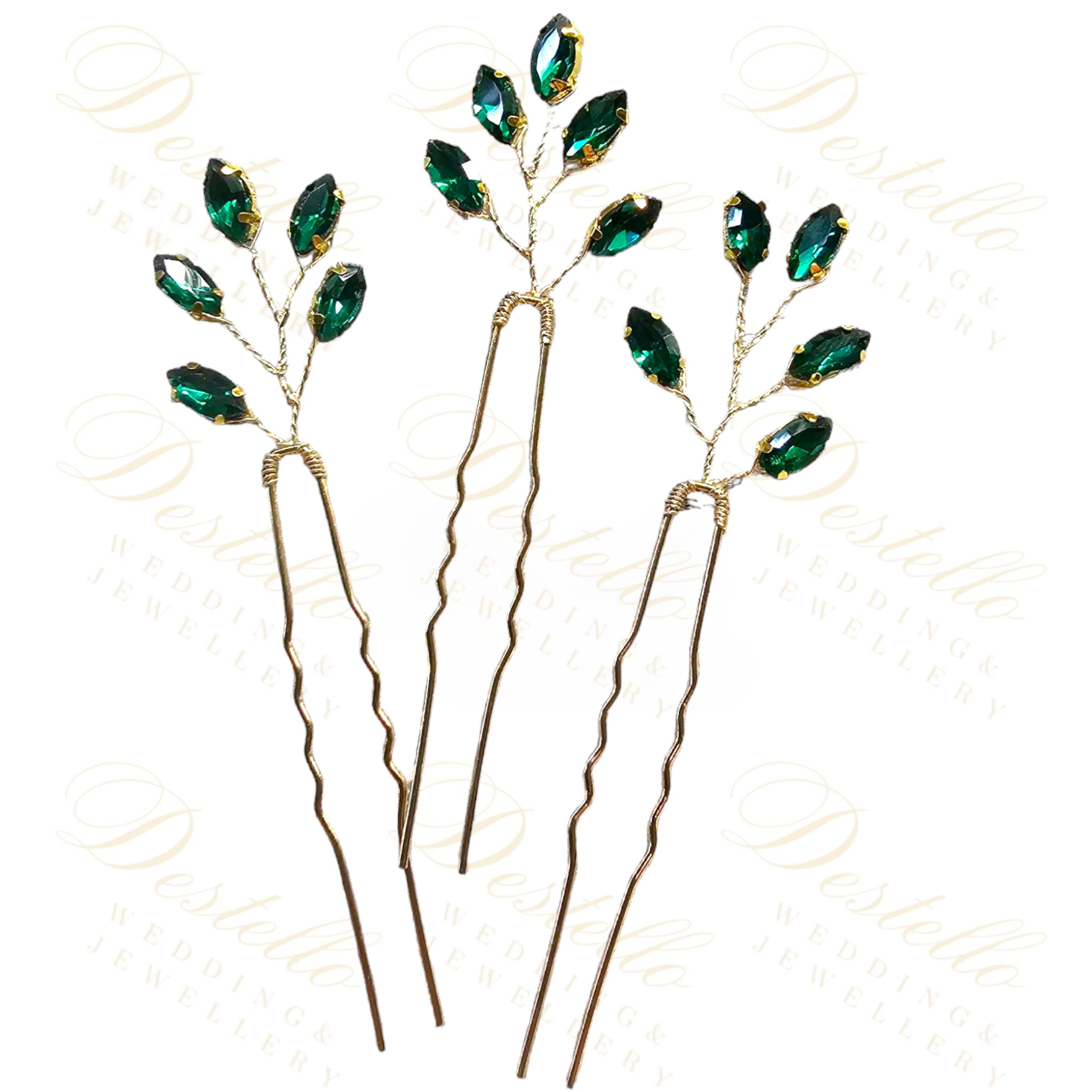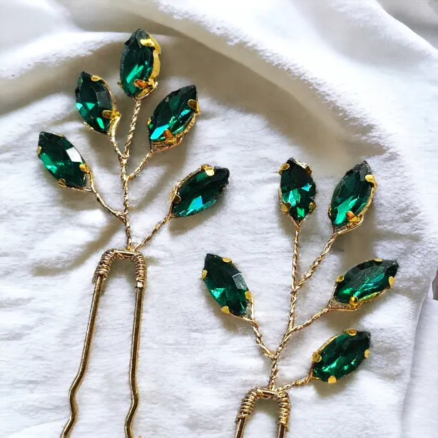 Zapraszamy do zakupu ekskluzywnych kokówek w klasycznym złotym odcieniu, które zdobią urocze szmaragdowe kamienie. W zestawie znajduje się 3 sztuki tych wspaniałych dodatków, które skradną serca wszystkich miłośniczek mody. Kokówki mają długość 9,5 cm, co sprawia, że doskonale prezentują się na każdej okazji.