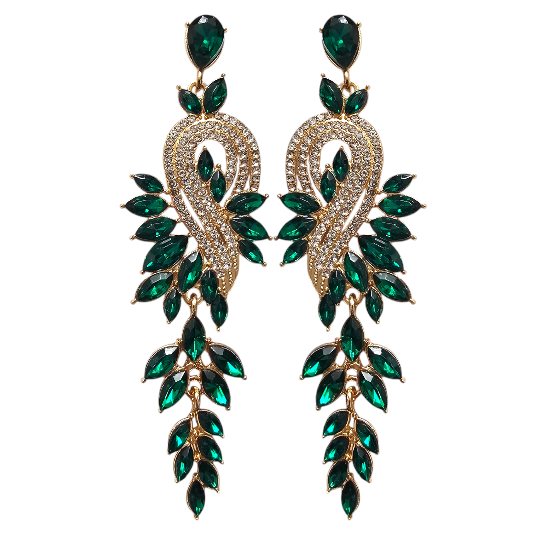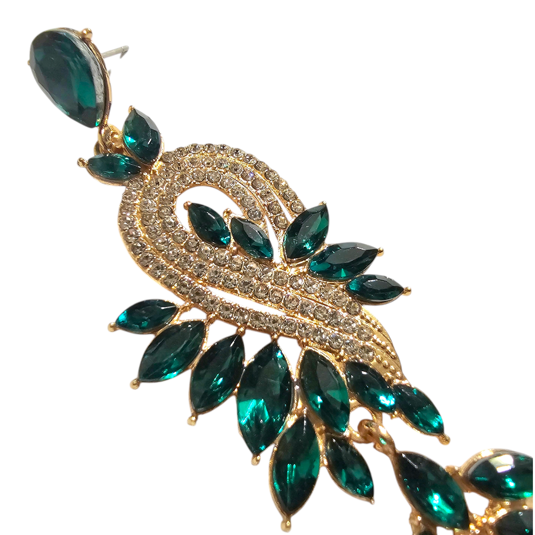 Te finezyjne złote kolczyki, ozdobione połyskującymi cyrkoniami w kolorze butelkowej zieleni, gwarantują niezwykły blask na każdej uroczystości. Posiadające klasyczny sztyft, stanowią trwałą ozdobę do Twojej kolekcji biżuterii.