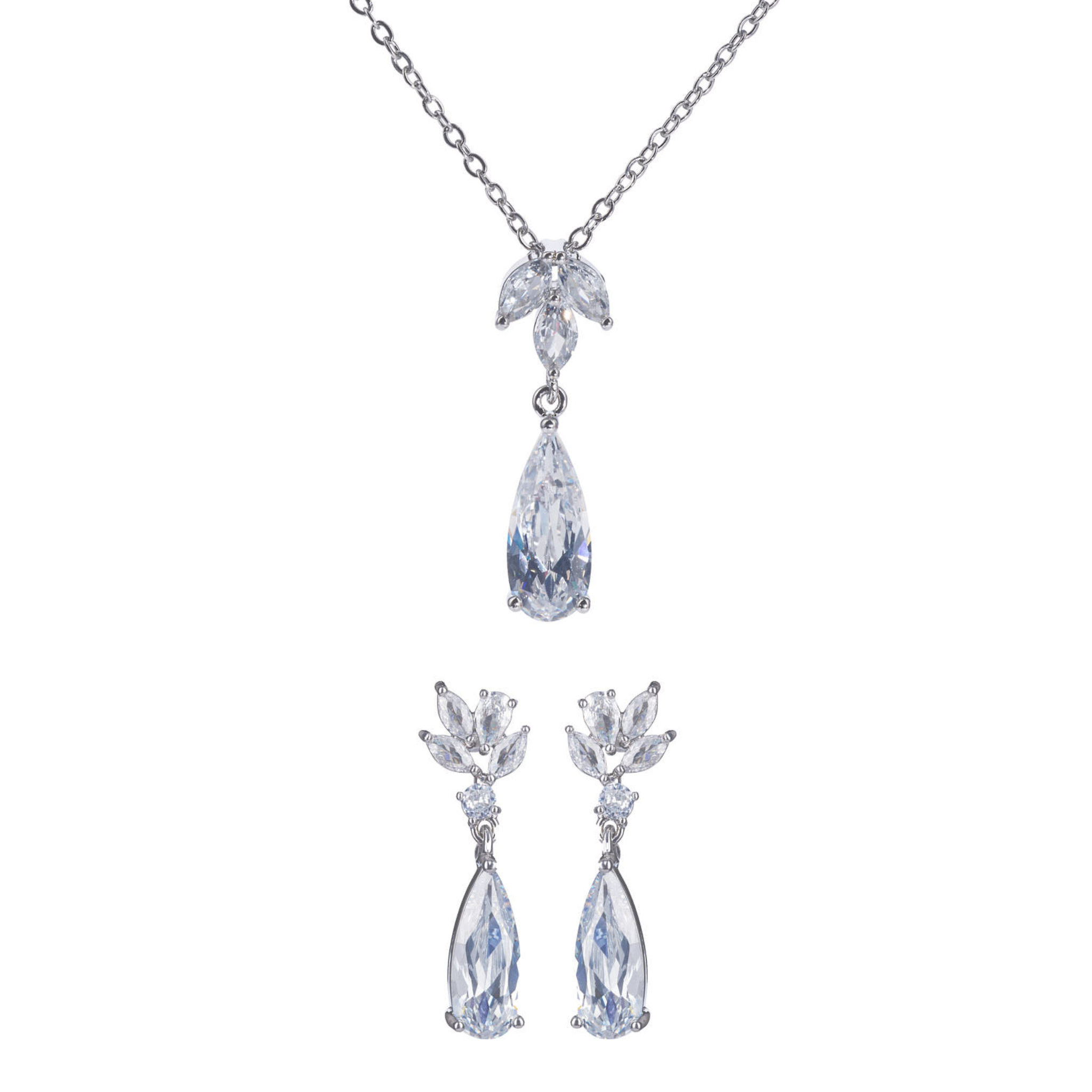 Ręcznie osadzane cyrkonie sześcienne dodają biżuterii blasku i sprawiają, że odbija światło jeszcze intensywniej. Komplet w stylu glamour jest elegancki i doskonale nadaje się jako biżuteria ślubna, ale również jako ozdoba na inne wyjątkowe okazje.