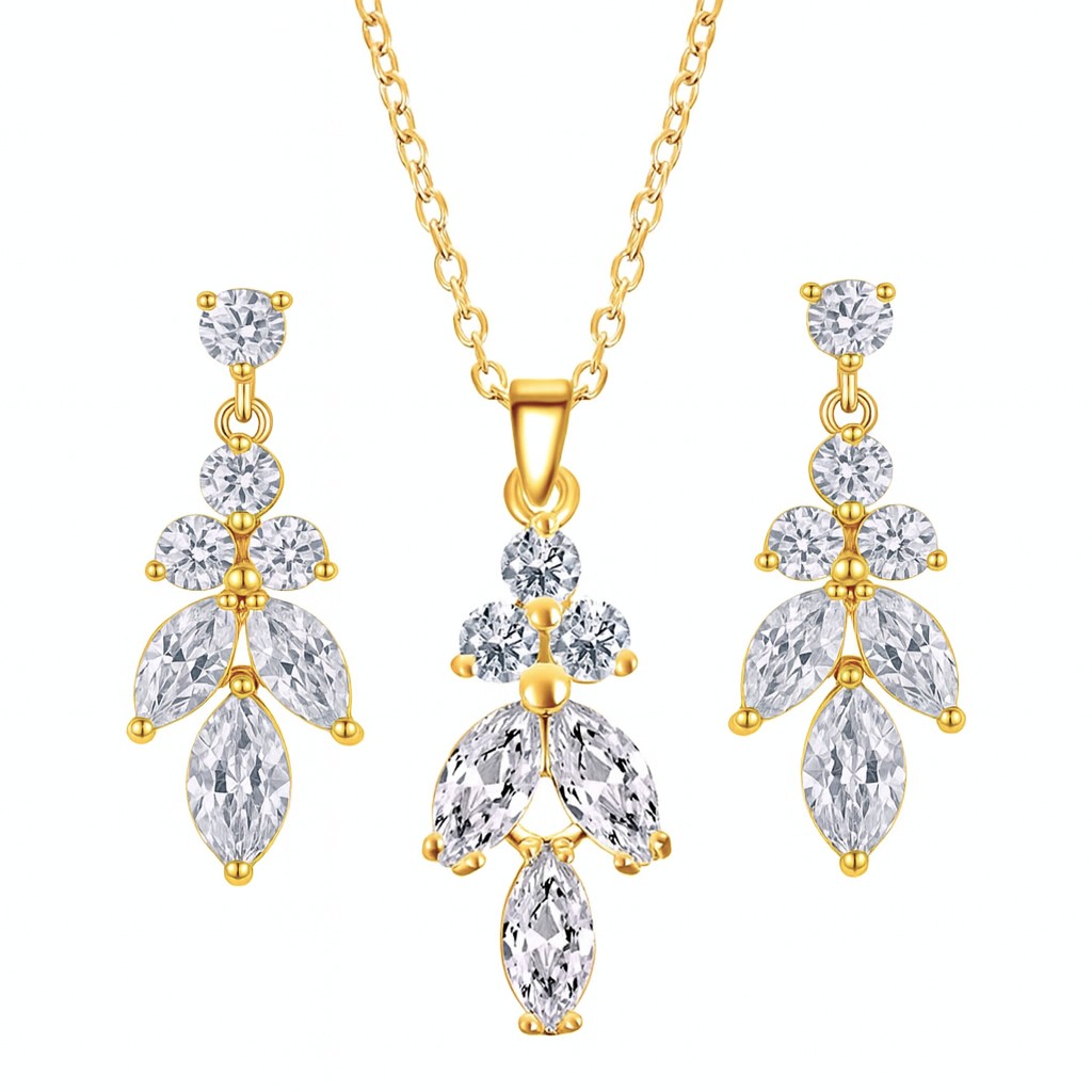 Złoty komplet ślubny z cyrkonią • naszyjnik + kolczyki ALBA