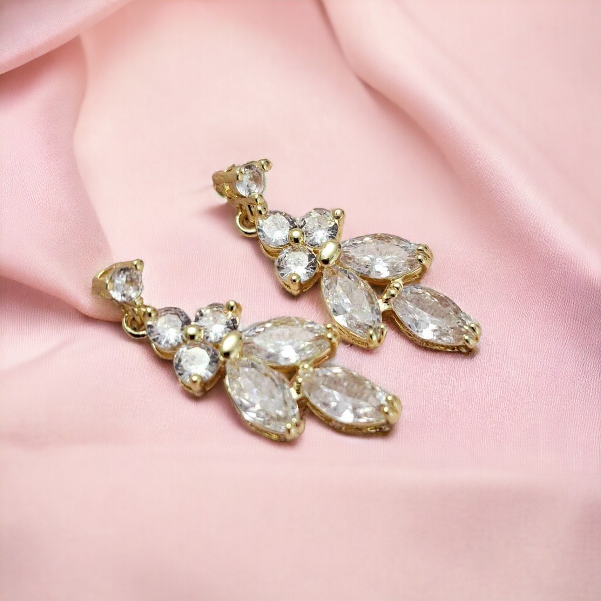 Mocno odbijające cyrkonie sześciennie sprawiają, że zestaw jest widoczny i przyciągający uwagę, ale w bardzo subtelny sposób. Elementy biżuterii są delikatne i wysublimowane. Kolczyki posiadają zapięcie typu sztyft, które zapewniają bezpieczne noszenie.