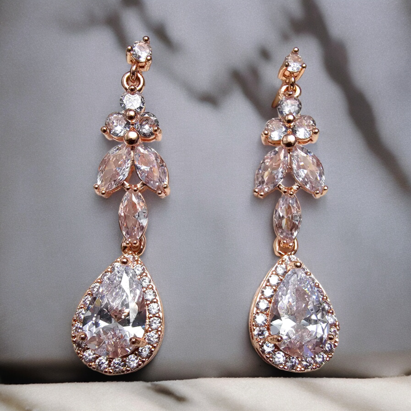 Wykonany z platerowanej miedzi, materiał ten jest bezpieczny dla skóry i pozbawiony kadmu, niklu oraz ołowiu, co czyni go hipoalergicznym. Cyrkonie sześcienne, osadzane ręcznie, nadają biżuterii jeszcze większego blasku, pięknie odbijając światło. Ten zestaw w stylu glamour jest doskonałym dodatkiem zarówno na ślub, jak i na inne wyjątkowe okazje.