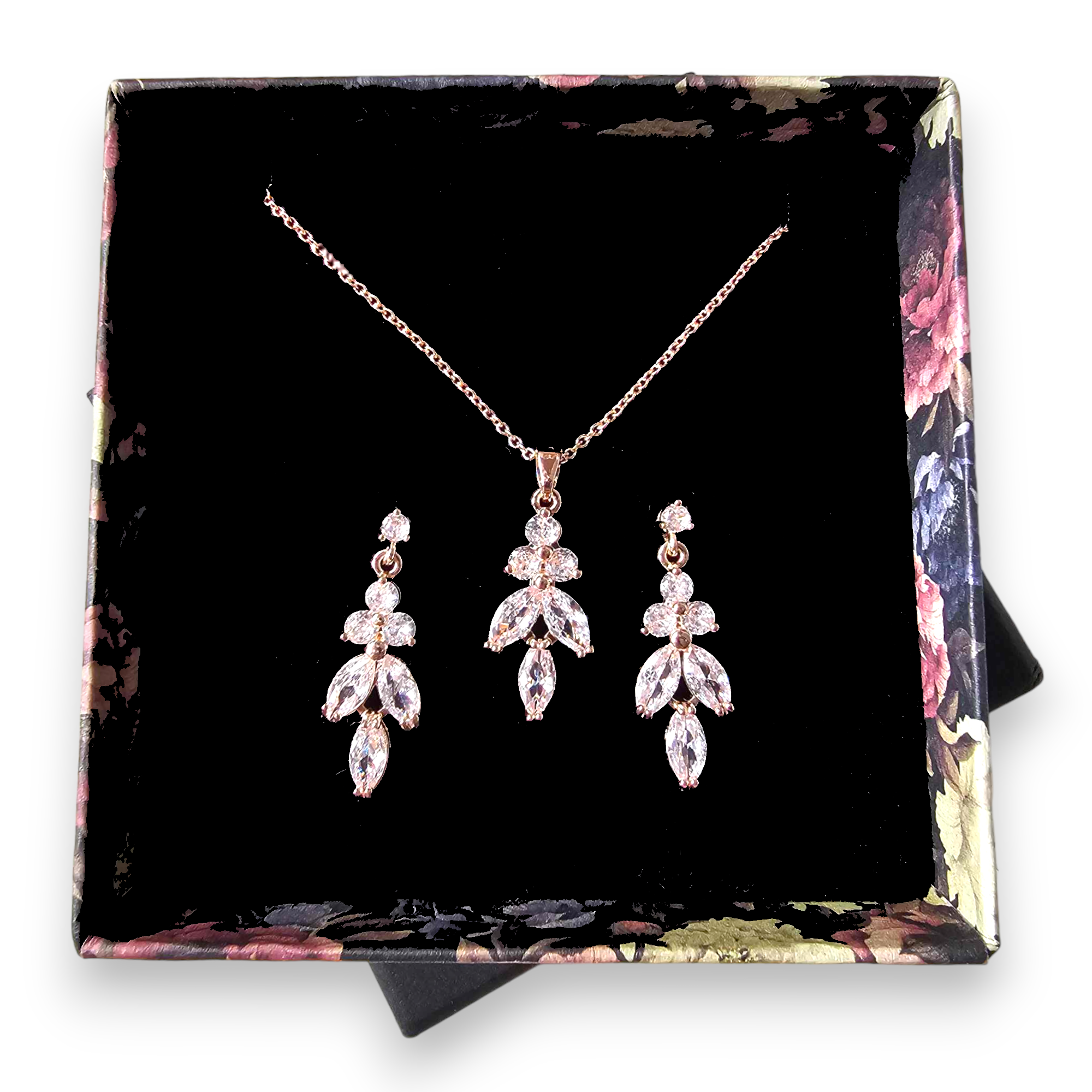 Zapraszam do zakupu tego pięknego kompletu premium w kolorze różowego złota. To doskonały wybór dla wszystkich, którzy chcą dodać blasku i elegancji swojej stylizacji. Biżuteria będzie przyciągać uwagę i dodawać uroku i blasku każdej kobiecie.