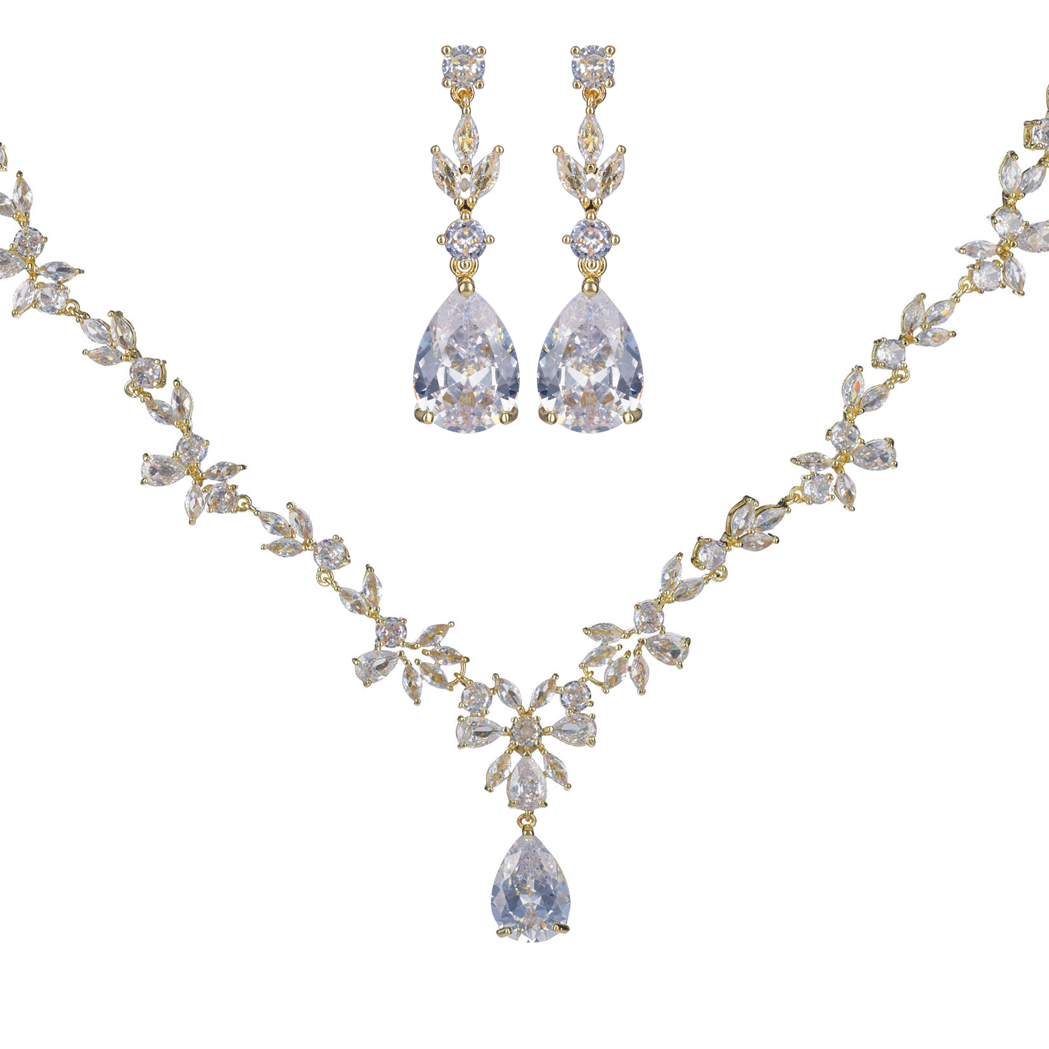 Ręcznie osadzane cyrkonie sześcienne dodają biżuterii blasku i sprawiają, że odbija światło jeszcze intensywniej. Komplet jest elegancki i doskonale nadaje się jako biżuteria ślubna, ale również jako ozdoba na inne ważne okazje.