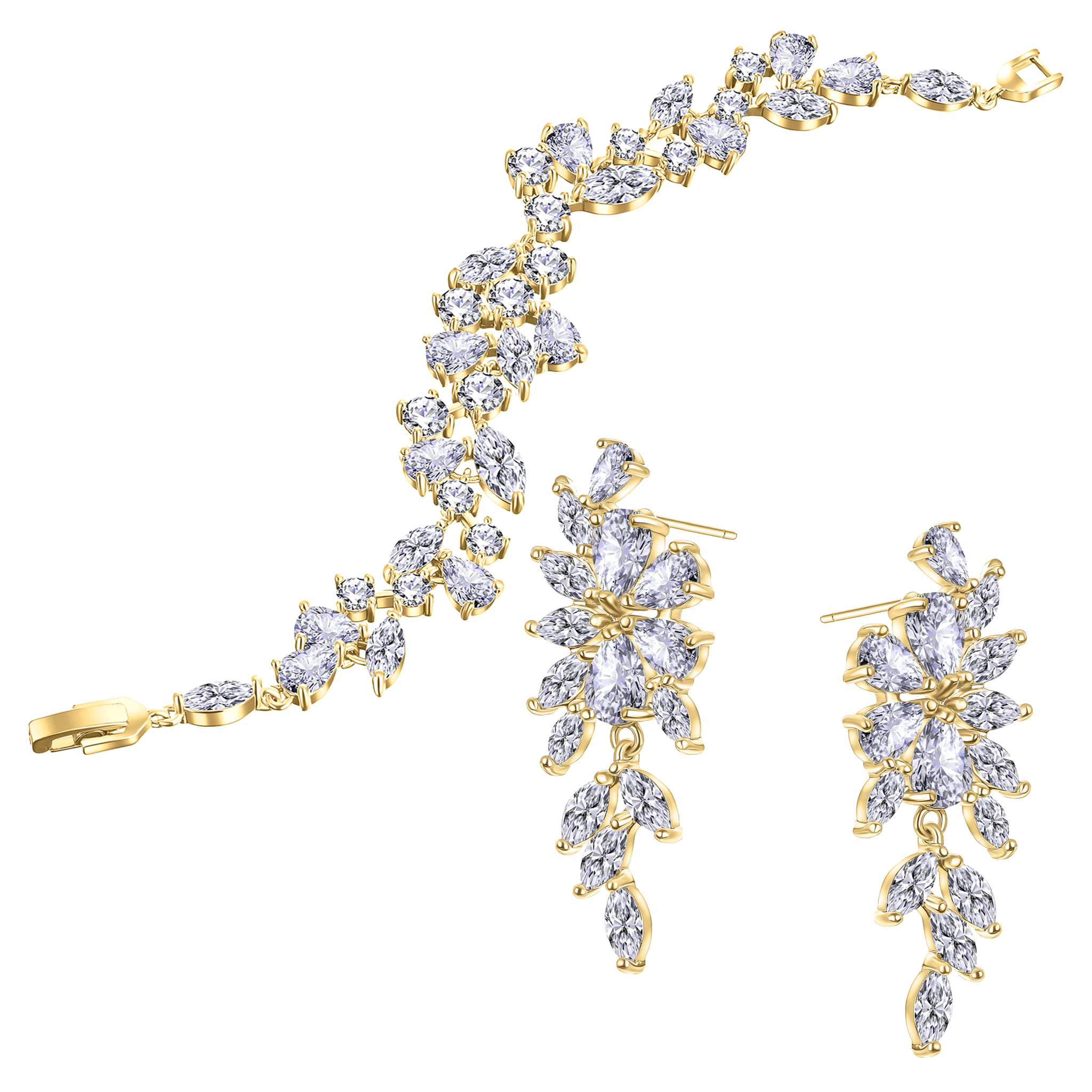 Ręcznie osadzane cyrkonie sześcienne dodają biżuterii blasku i sprawiają, że odbija światło jeszcze intensywniej. Komplet w stylu glamour jest elegancki i doskonale nadaje się jako biżuteria ślubna, ale również jako ozdoba na inne wyjątkowe okazje.