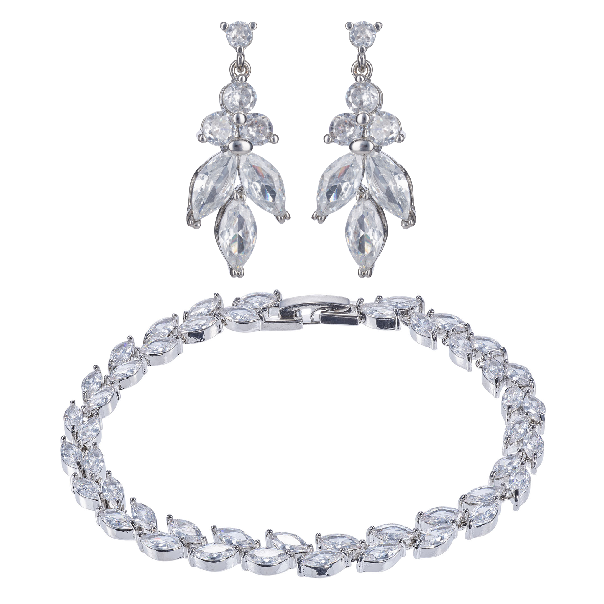 Ręcznie osadzane cyrkonie sześcienne dodają biżuterii blasku i sprawiają, że odbija światło jeszcze intensywniej. Komplet w stylu glamour jest elegancki i doskonale nadaje się jako biżuteria ślubna, ale również jako ozdoba na inne wyjątkowe okazje.