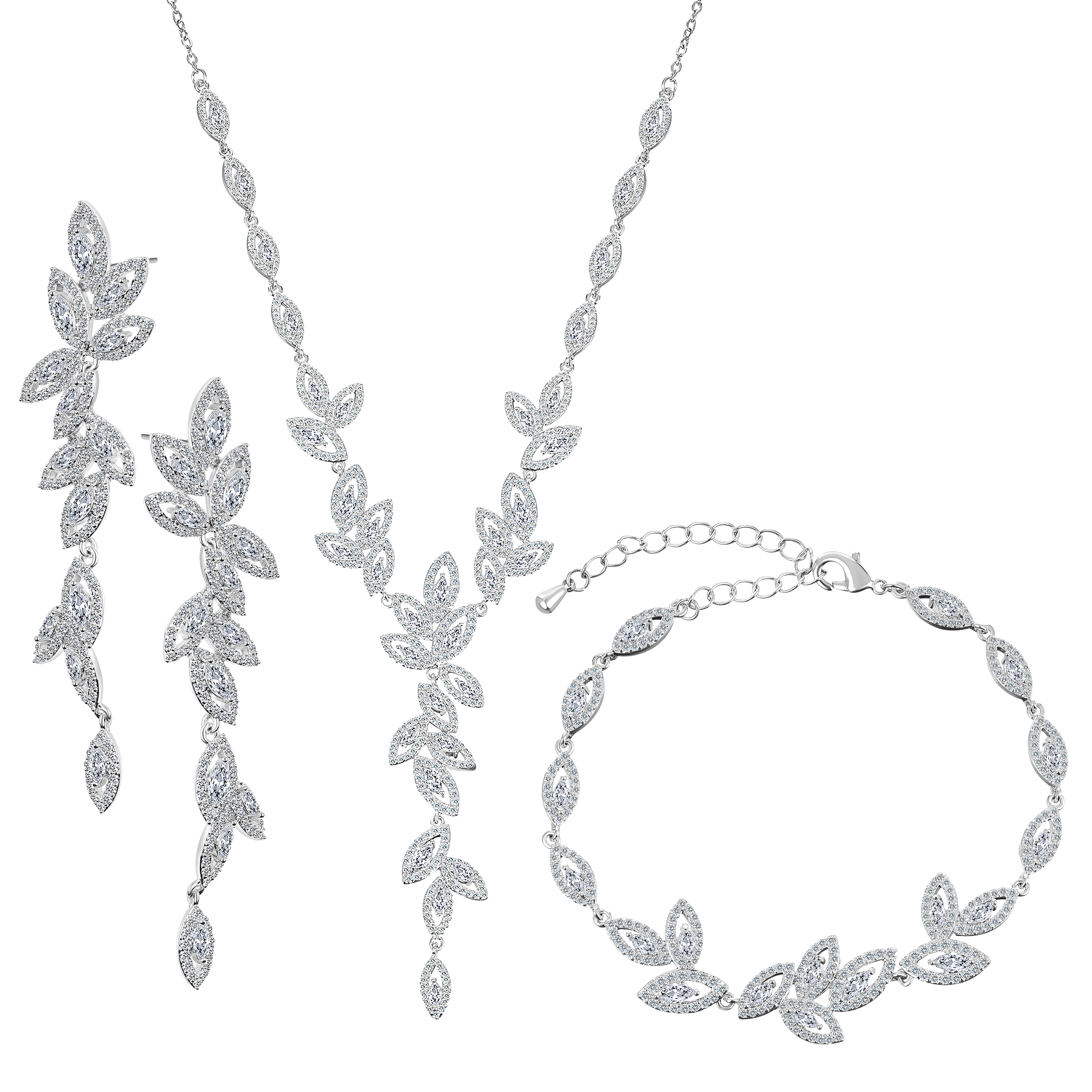 Ręcznie osadzane cyrkonie sześcienne dodają biżuterii blasku i sprawiają, że odbija światło jeszcze intensywniej. Komplet w stylu glamour jest elegancki i doskonale nadaje się jako biżuteria ślubna, ale również jako ozdoba na inne wyjątkowe okazje.