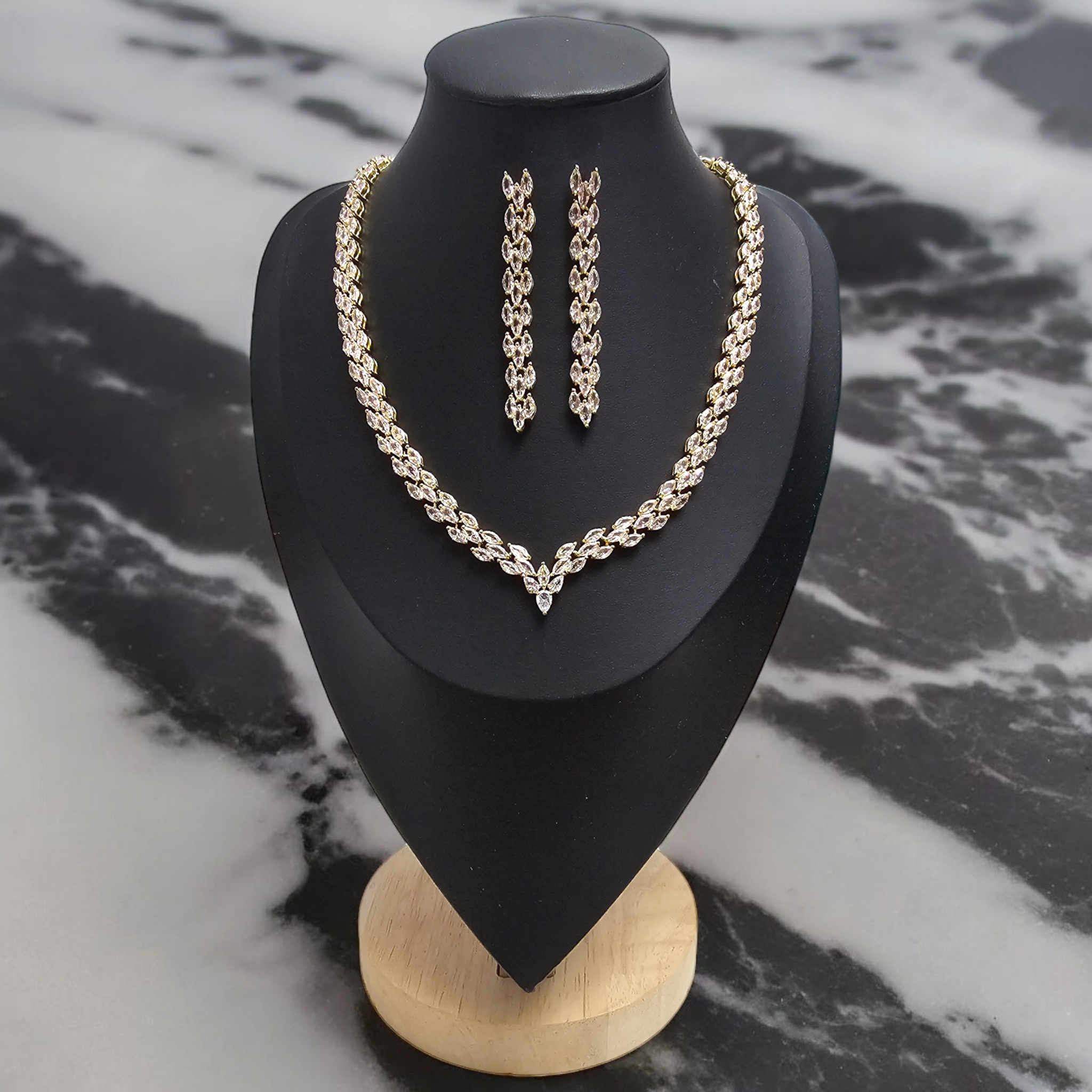Ręcznie osadzane cyrkonie sześcienne dodają biżuterii blasku i sprawiają, że odbija światło jeszcze intensywniej. Komplet w stylu glamour jest elegancki i doskonale nadaje się jako biżuteria ślubna, ale również jako ozdoba na inne wyjątkowe okazje.