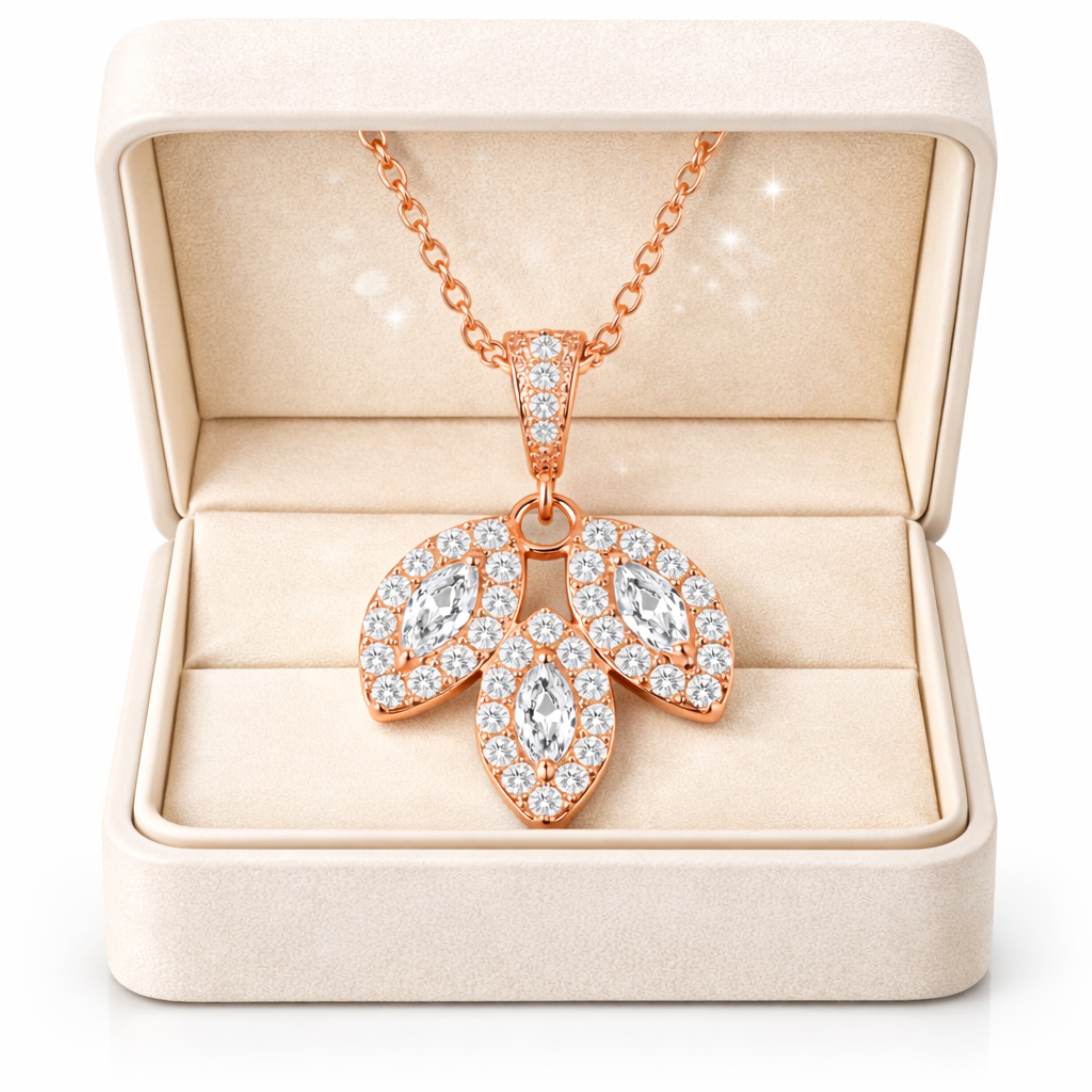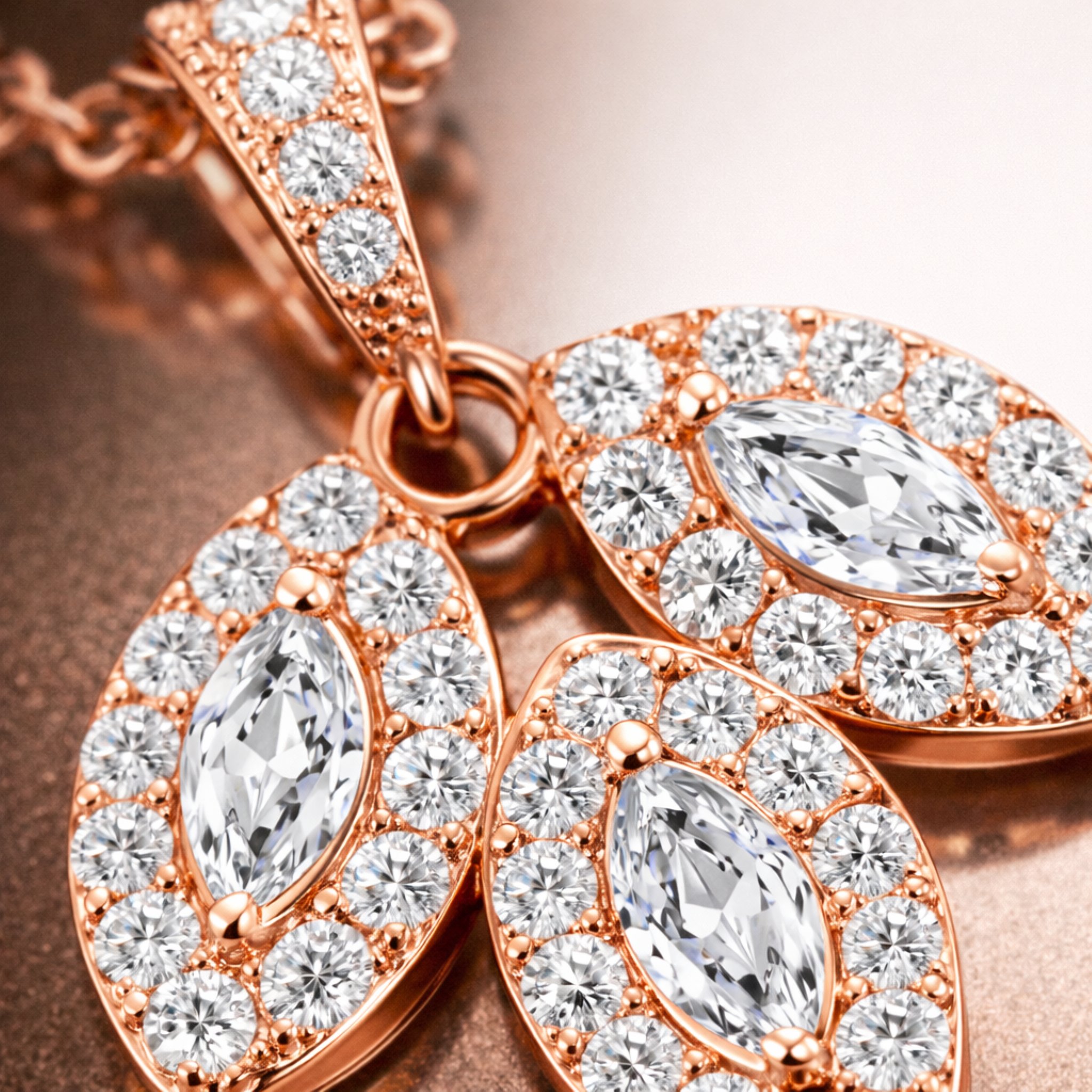 Subtelny blask, który miękko odbija światło i delikatnie podkreśla dekolt – elegancja różowego złota w najbardziej kobiecej, wyrafinowanej odsłonie.