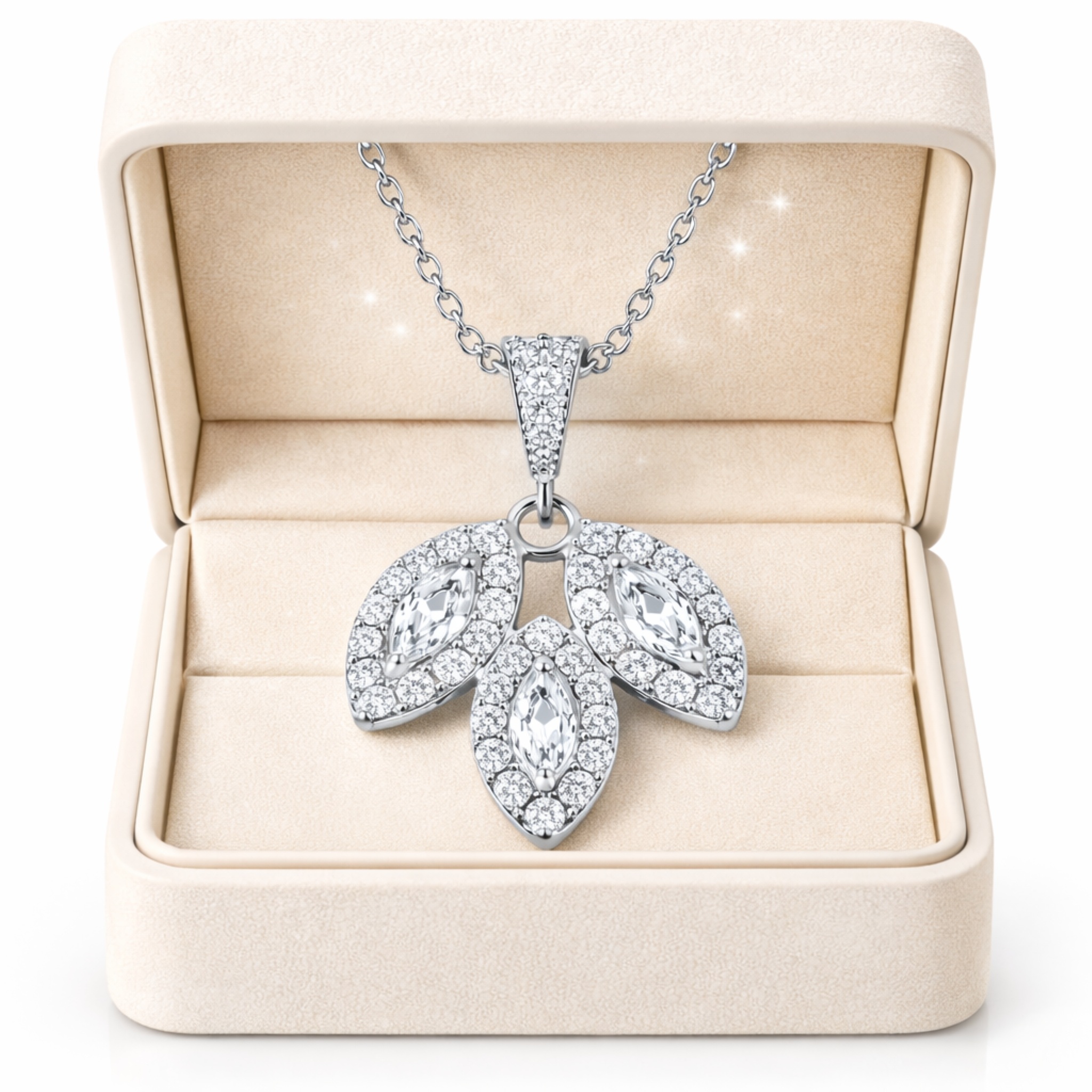 Krystaliczny blask, który delikatnie podkreśla dekolt i odbija światło przy każdym ruchu – subtelna elegancja w najbardziej szlachetnej, srebrnej odsłonie.