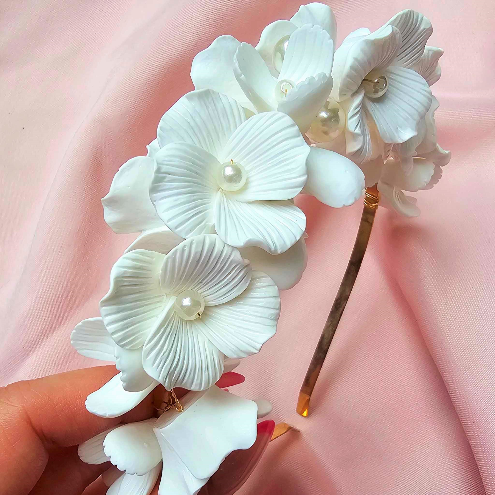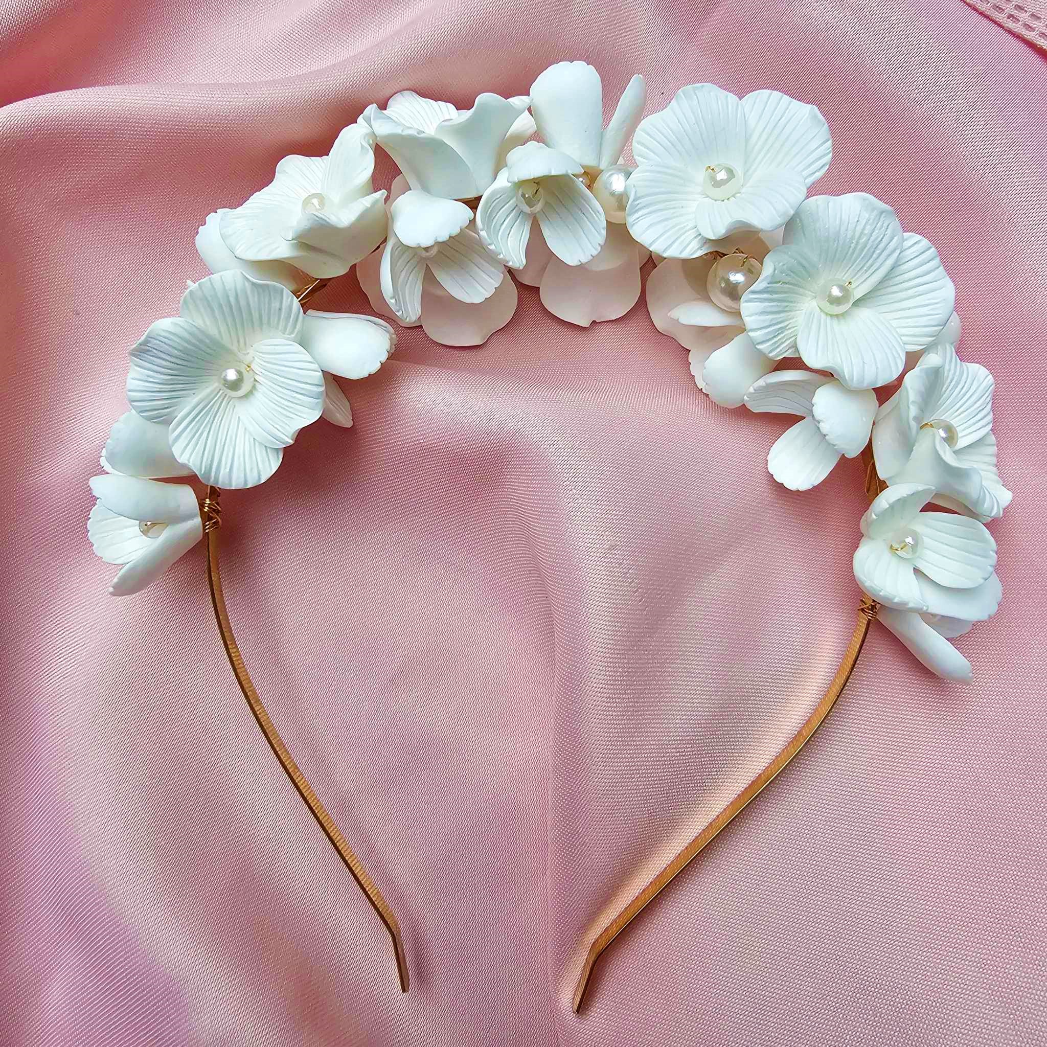 Opaska jest ręcznie wykonana z najwyższej jakości materiałów, co pozwala na estetyczne i trwałe wykończenie. Białe kwiatki są bardzo lekkie, przez co ozdobę można nosić komfortowo do białego rana!!!
