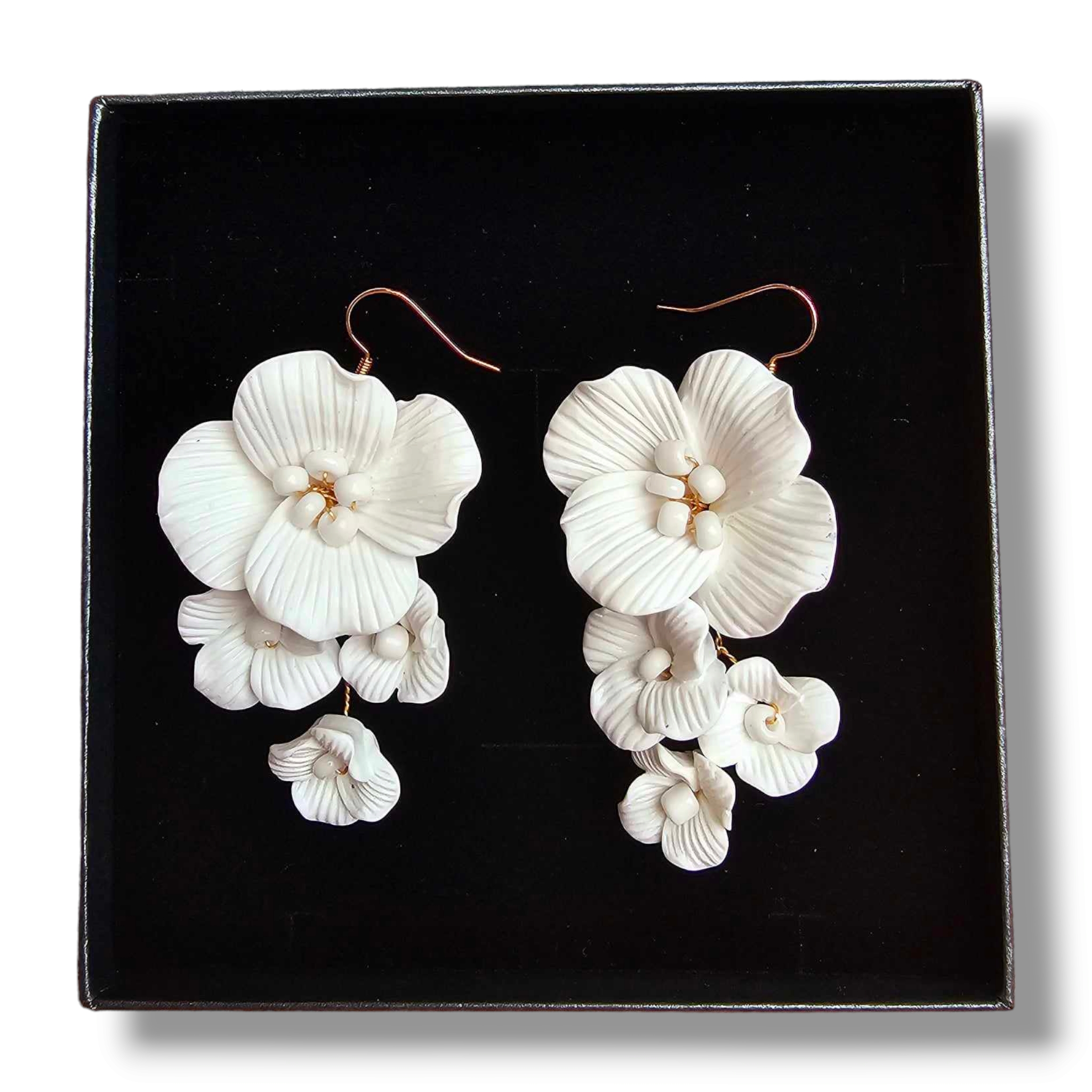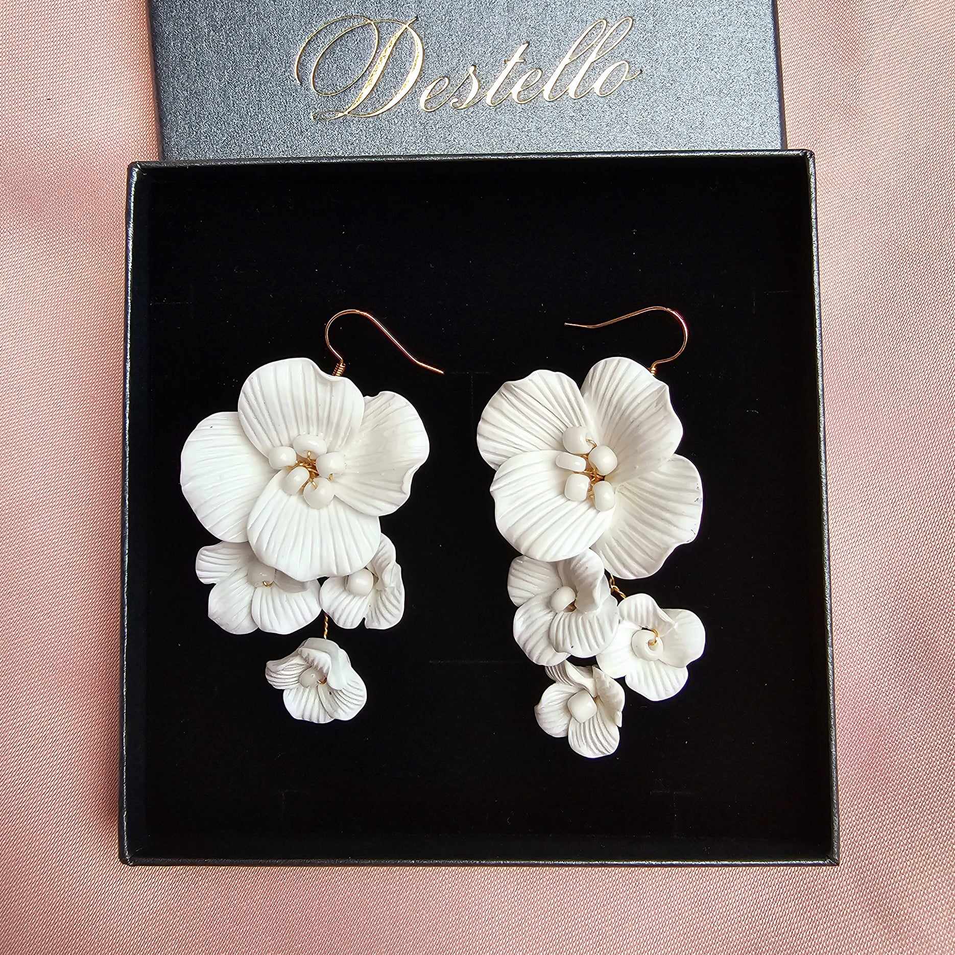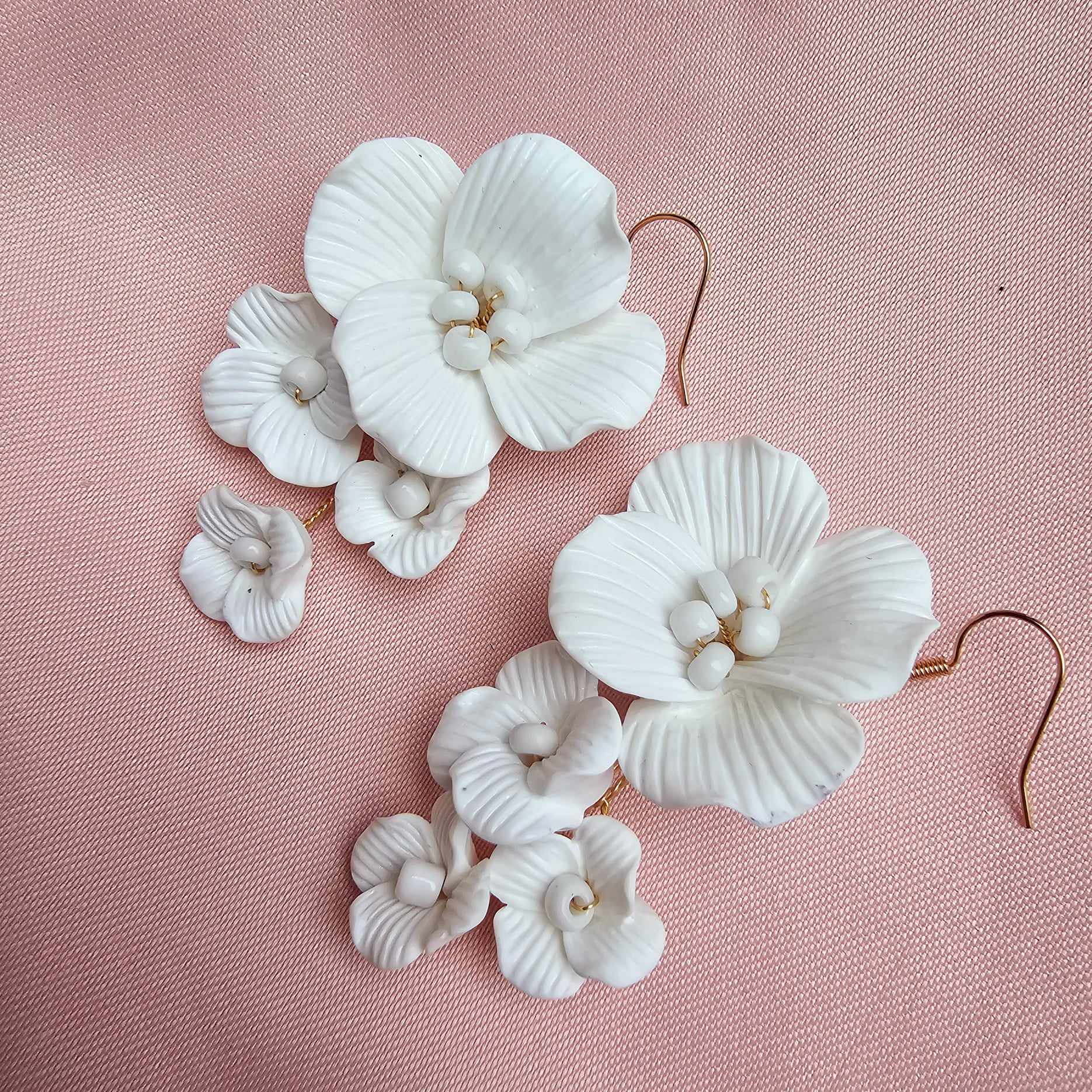 Delikatny design z białymi kwiatami dodaje uroku oraz świeżości każdemu ślubnemu strojowi. Nasze kolczyki są wykonane z najwyższej jakości materiałów, co gwarantuje trwałość i komfort noszenia nawet przez długie godziny podczas uroczystości ślubnej.