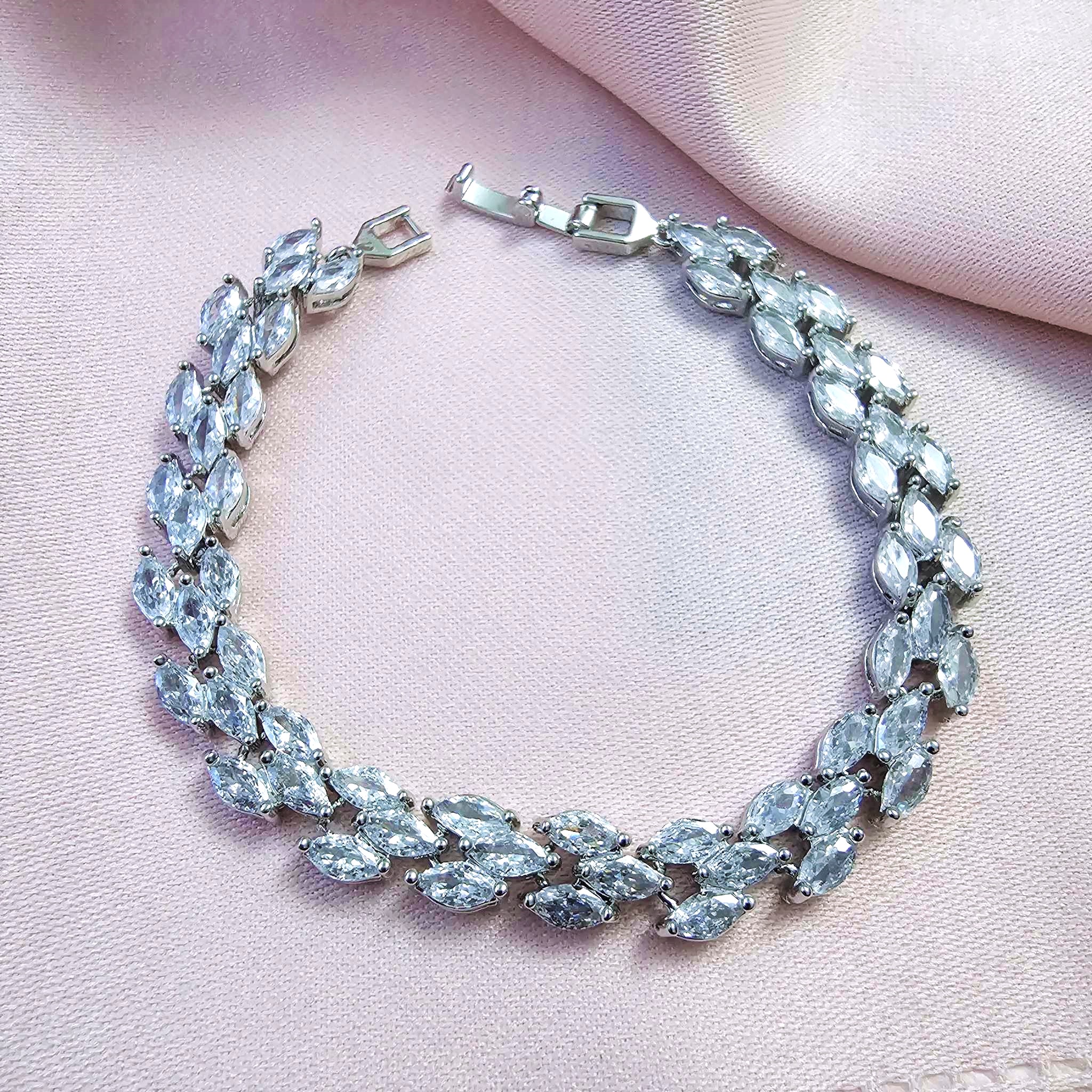 Mocno odbijające cyrkonie sześciennie sprawiają, że bransoletka jest widoczna i przyciągający uwagę, ale w bardzo subtelny sposób. Elementy biżuterii są delikatne i wysublimowane.