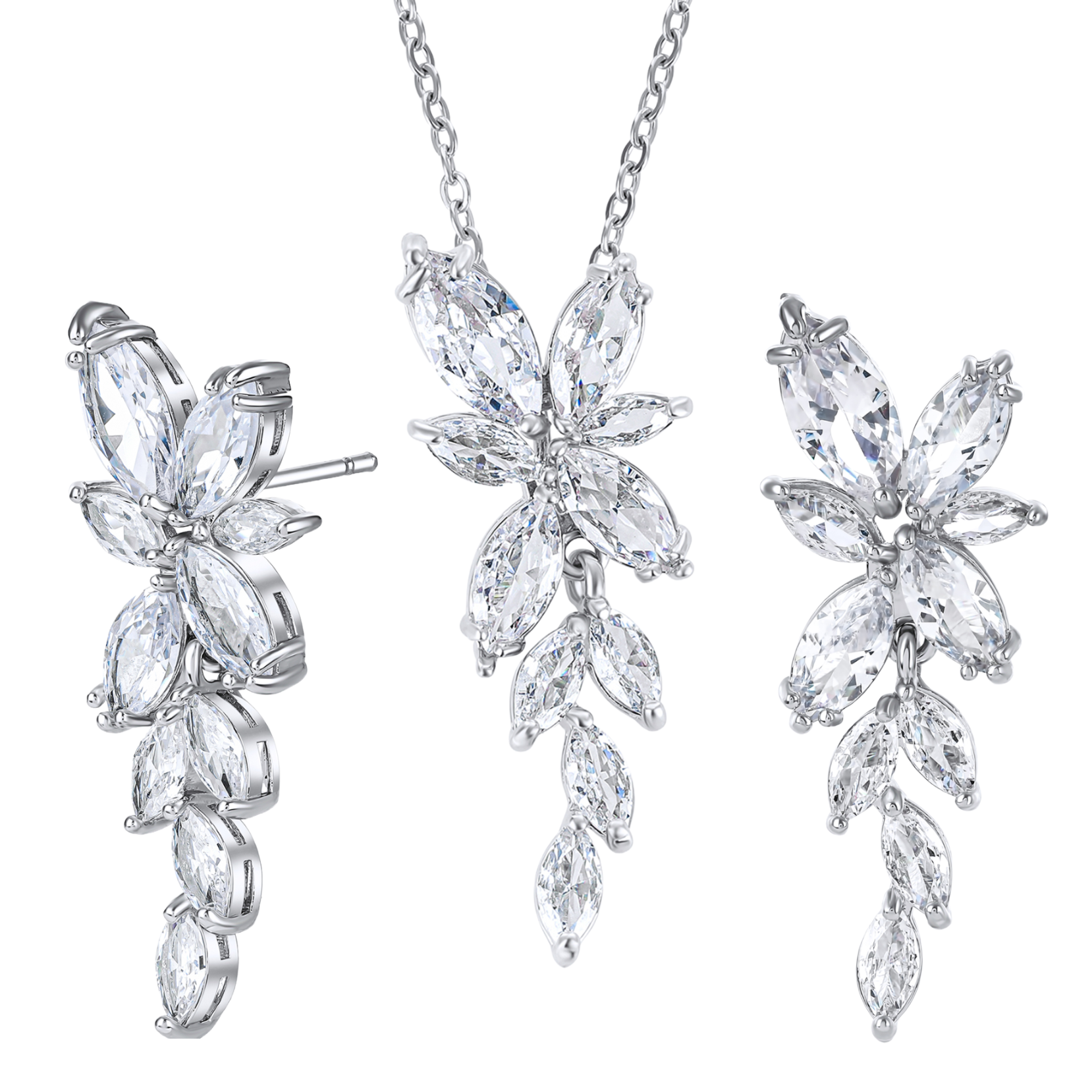 Ręcznie osadzane cyrkonie sześcienne dodają biżuterii blasku i sprawiają, że odbija światło jeszcze intensywniej. Komplet w stylu glamour jest elegancki i doskonale nadaje się jako biżuteria ślubna, ale również jako ozdoba na inne wyjątkowe okazje.