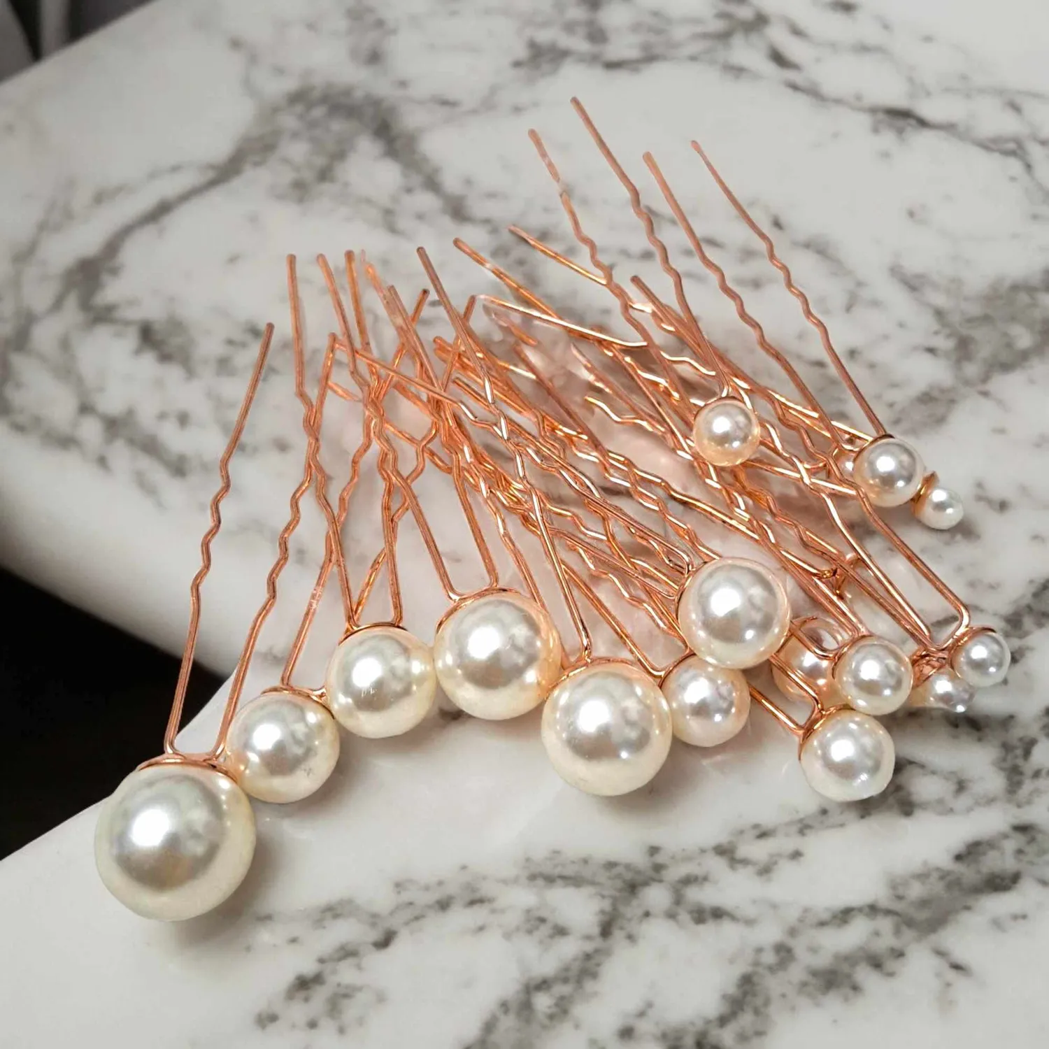 Zapraszamy do zakupu ekskluzywnych kokówek w odcieniu różowego złota, które zdobią urocze białe perły. W zestawie znajduje się 17 sztuk tych wspaniałych dodatków, które skradną serca wszystkich miłośniczek mody. Kokówki mają długość 7,5 cm, co sprawia, że doskonale prezentują się na każdej okazji.
