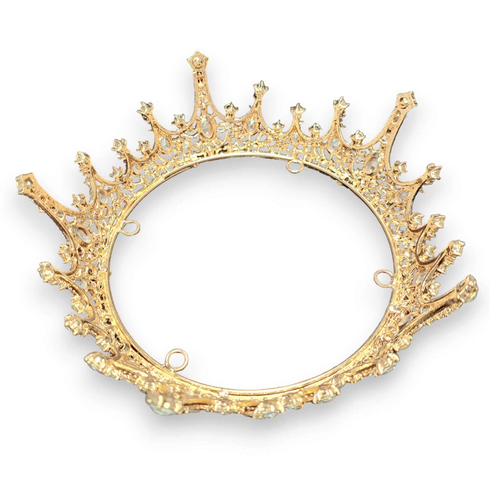 Zaprezentuj swoje królewskie poczucie stylu z naszą elegancką, królewską koroną w kolorze złota z cyrkoniami. Ta wyjątkowa ozdoba jest doskonałym dodatkiem do Twojej okazjonalnej garderoby, dodając odrobinę luksusu i szyku.
