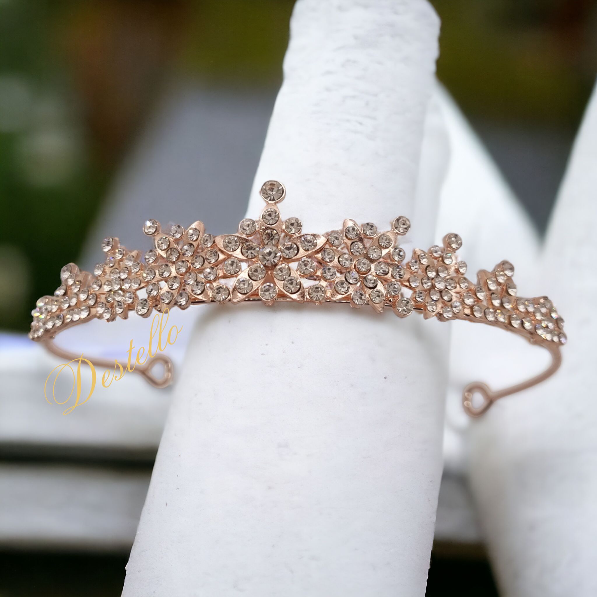 Przedstawiamy Państwu ekskluzywny diadem w kolorze różowego złota. Nasza tiara to wyjątkowa ozdoba, która została pięknie zdobiona mieniącymi się cyrkoniami. Dodadzą one Państwa stylizacji niepowtarzalnego blasku, podkreślając urok i elegancję. Wykonana z wysokiej jakości metalu, diadem jest nie tylko piękny, ale także wygodny w noszeniu.