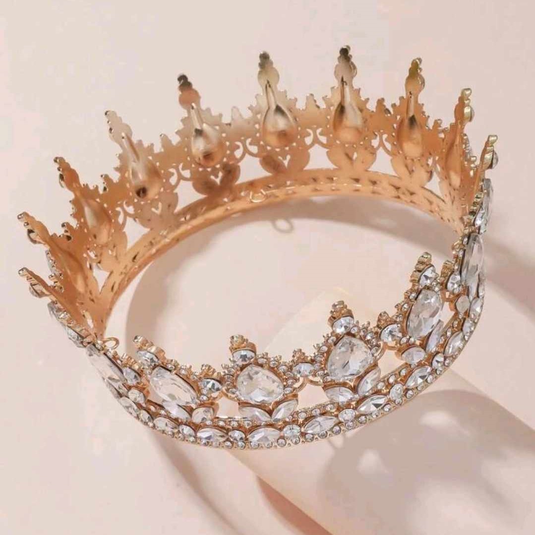 Zaprezentuj swoje królewskie poczucie stylu z naszą elegancką, królewską koroną w kolorze złota z cyrkoniami. Ta wyjątkowa ozdoba jest doskonałym dodatkiem do Twojej okazjonalnej garderoby, dodając odrobinę luksusu i szyku.