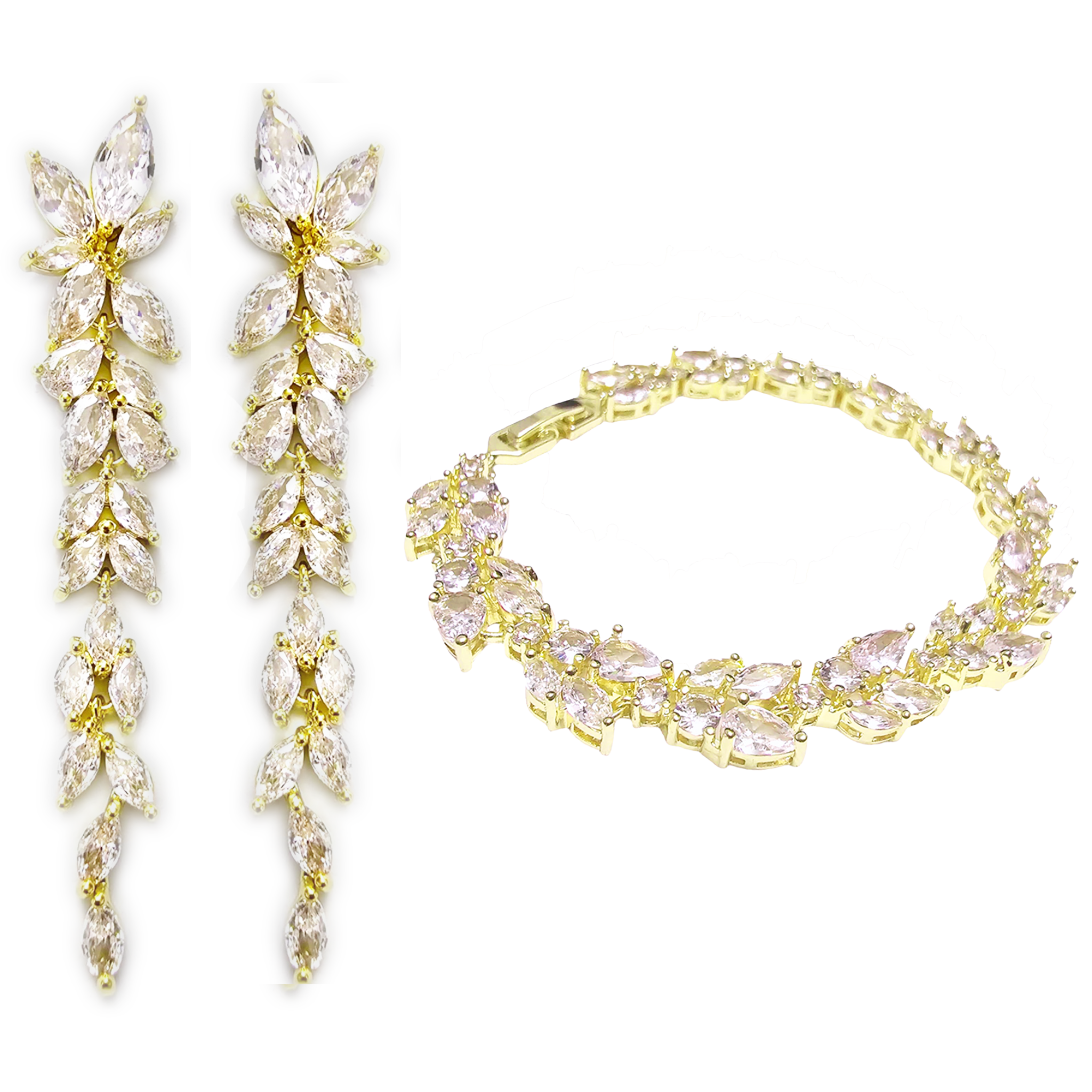 W skład biżuterii wchodzą efektowne kolczyki oraz subtelna bransoletka, które zostały wykonane z dbałością o każdy szczegół. Użyte materiały najwyższej jakości zapewniają nie tylko trwałość, ale również komfort noszenia przez cały dzień. Kolczyki posiadają zapięcie typu sztyft.