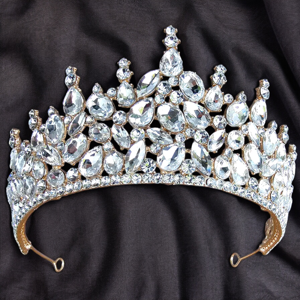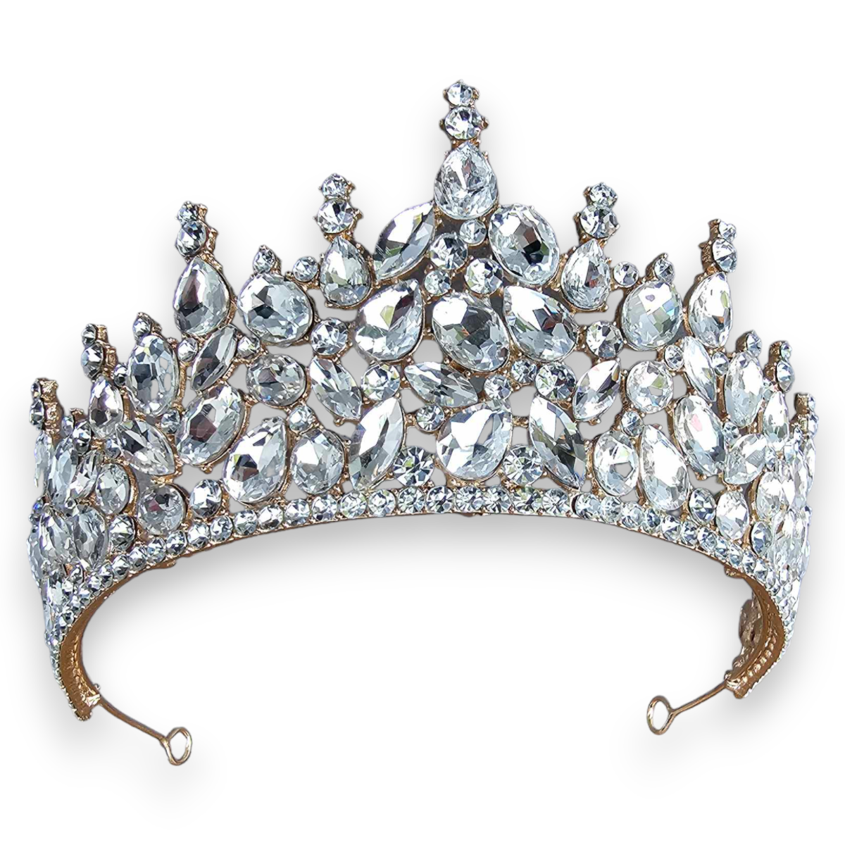 Ekskluzywna złota Tiara, korona, diadem z cyrkoniami - ślub, studniówka