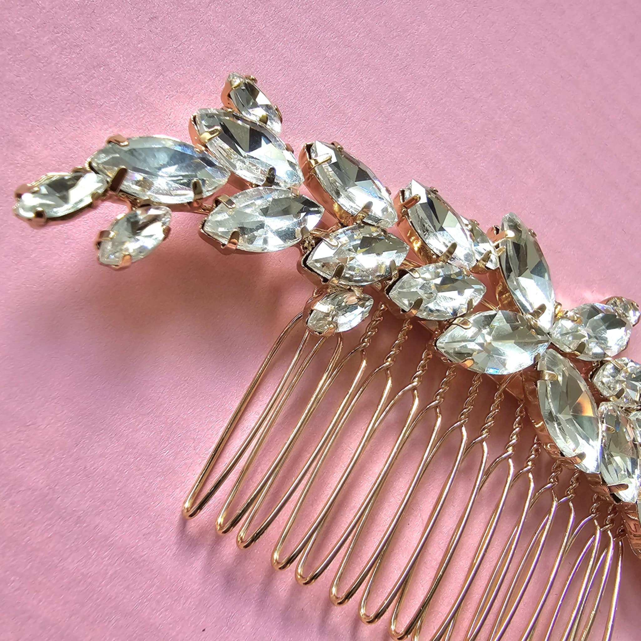 Grzebyki ślubne to eleganckie ozdoby, które dodają blasku i delikatności każdej stylizacji. Subtelne zdobienia z kryształków i pereł pięknie dopełniają fryzurę, podkreślając wyjątkowy charakter chwili i romantyczny urok panny młodej.